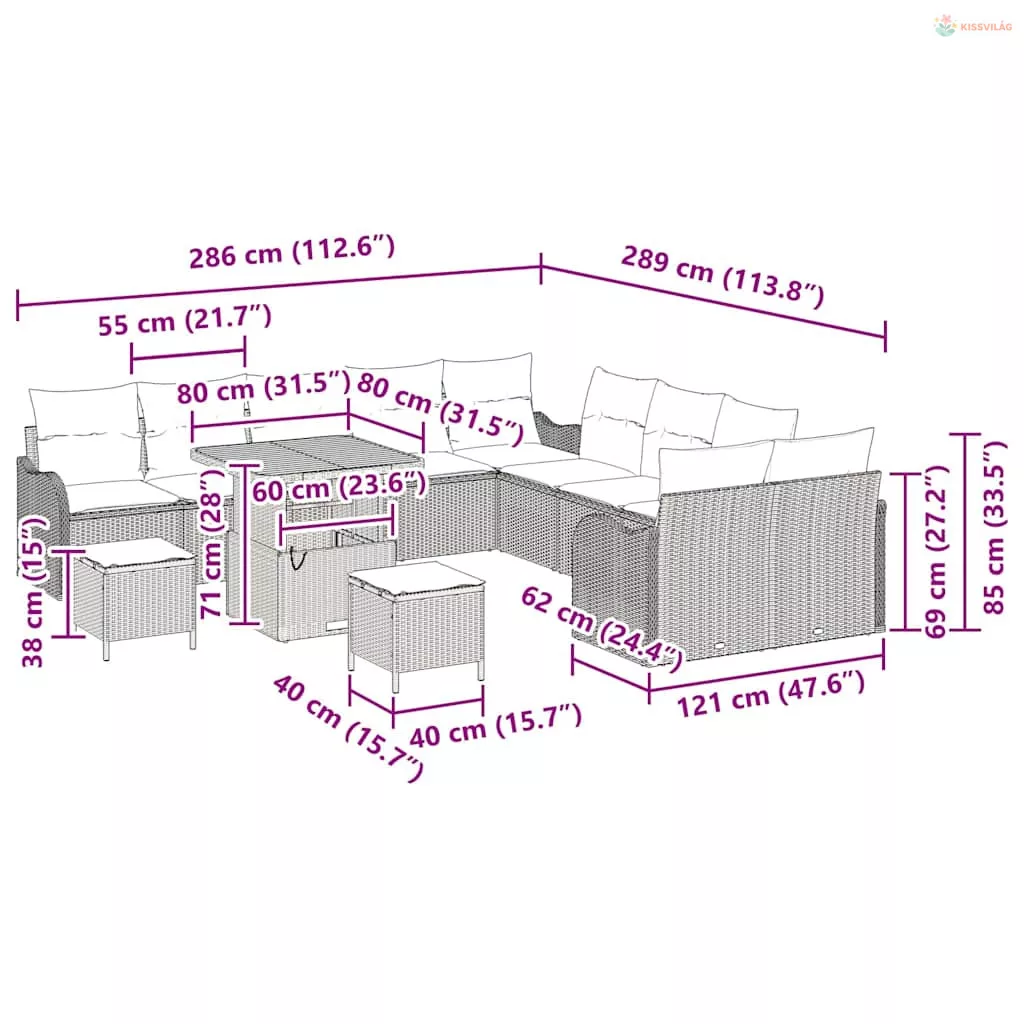 Kerti Kanapé Szett párnával 13 pcs Szürke polirattan