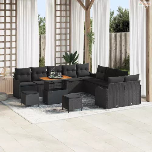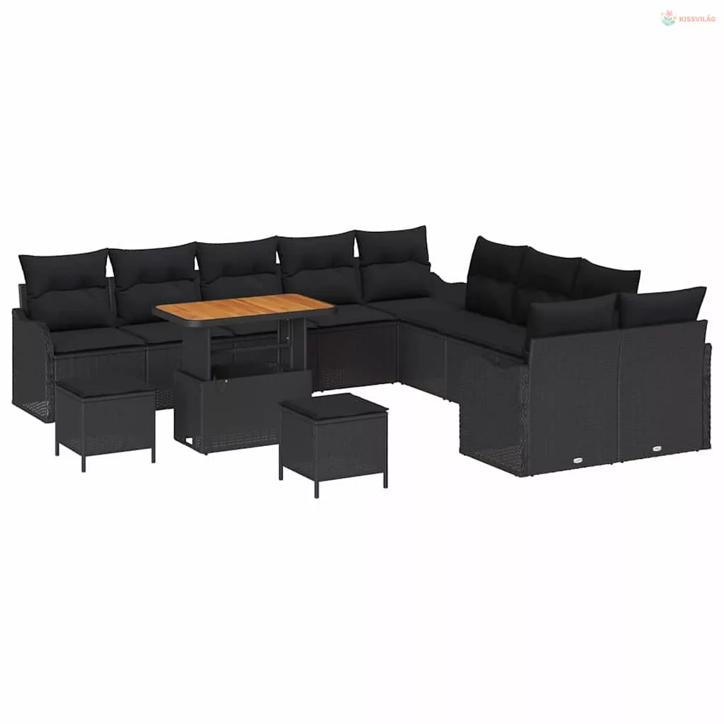 Kerti Kanapé Szett 13 pcs Fekete polirattan