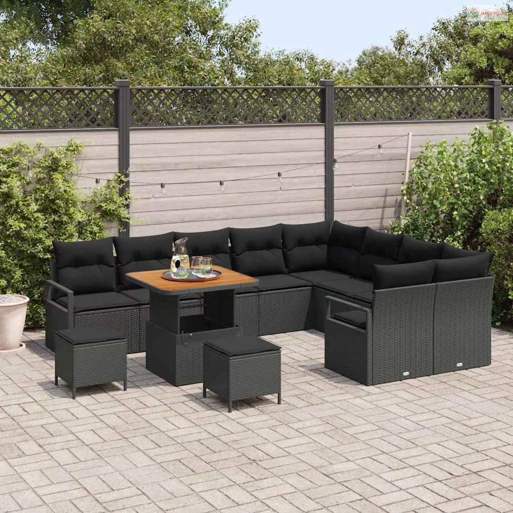 Kerti Kanapé Szett párnával 12 pcs Fekete polirattan