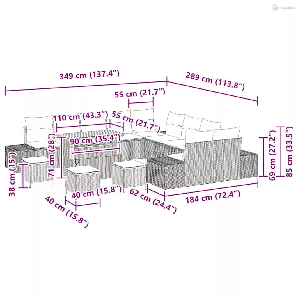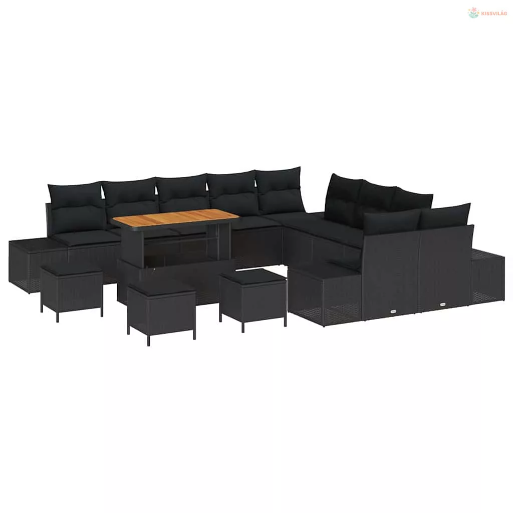 Kerti Kanapé Szett párnával 14 pcs Fekete polirattan