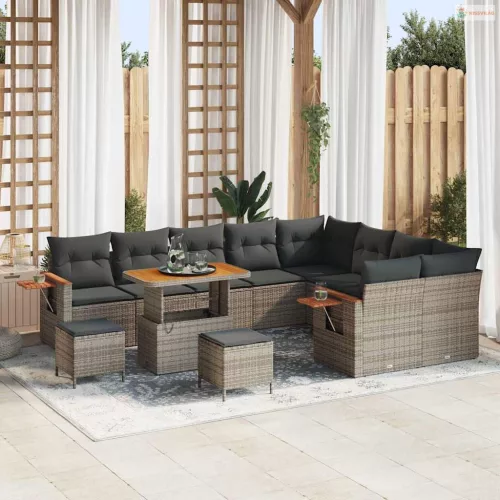 Kerti Kanapé Szett 12 pcs Szürke Poli rattan és porfestett acél
