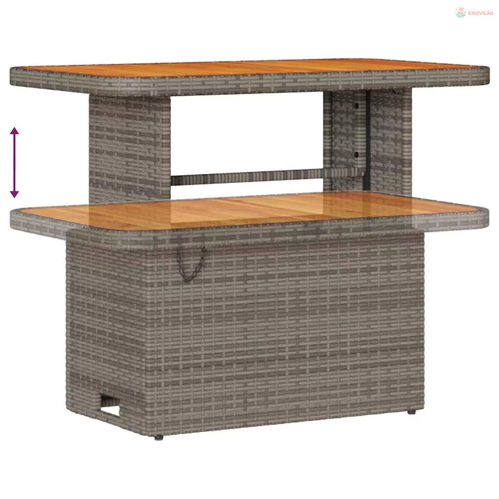 • Anyagok: A kanapészett polirattant használ, ami szőtt texturájú, és nagyon ellenáll a kültéri körülményeknek, UV-sugaraknak és nedvességnek is. A porfestett acél keret stabilitást és tartósságot nyújt, míg az akácfa részletek természetes érzetet adnak, bővítve a modern megjelenést és az élettartamot.