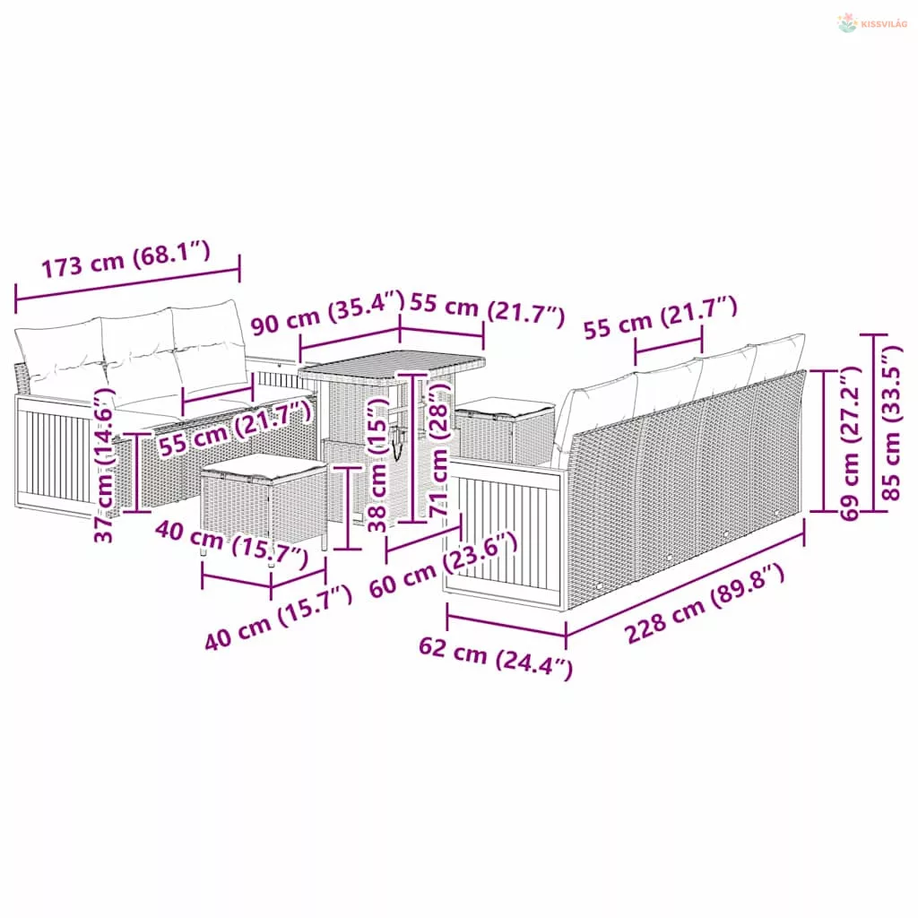 Kerti Kanapé Szett párnával 10 pcs Fekete és Krém