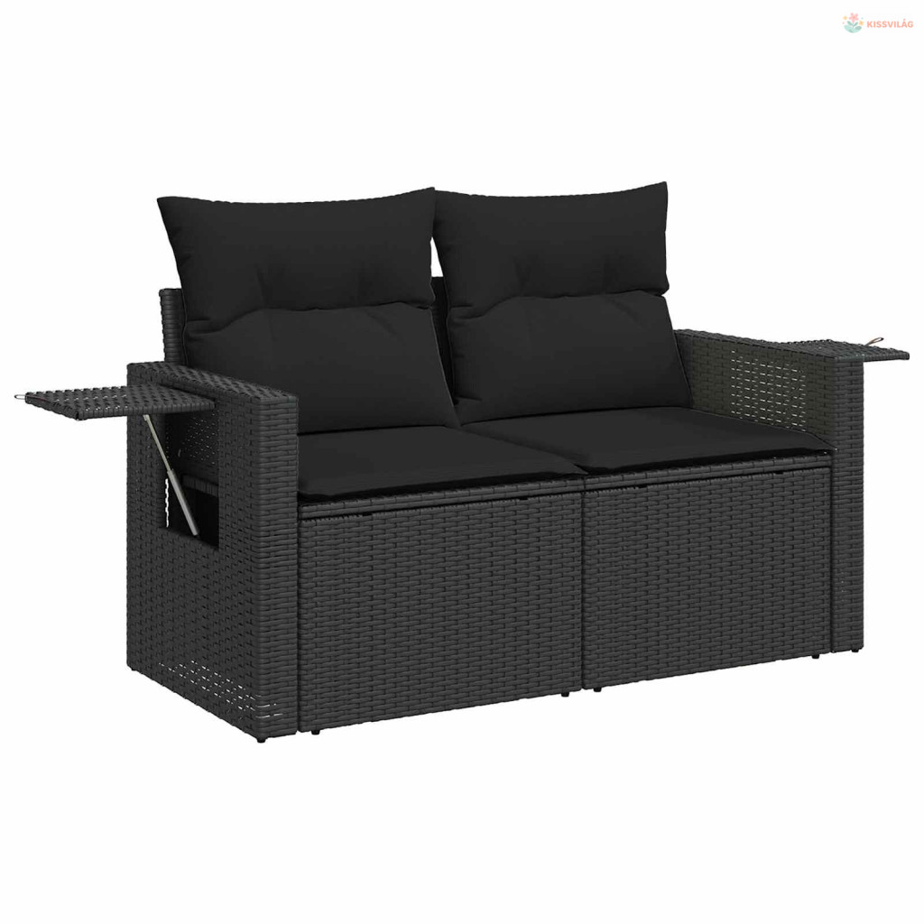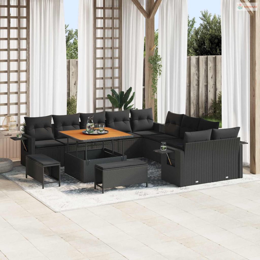 Kerti Kanapé Szett párnával tárolóval 13 pcs Fekete polirattan