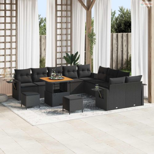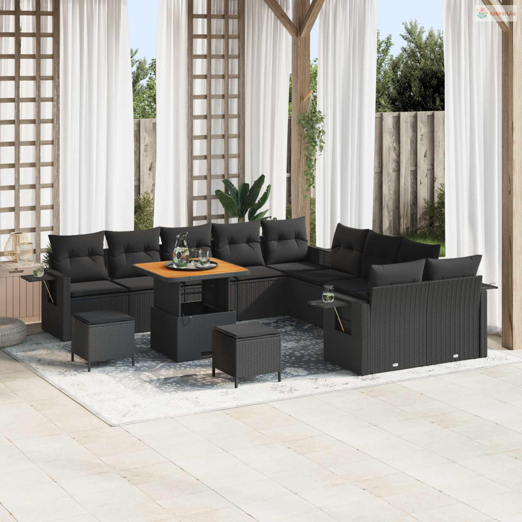 Kerti Kanapé Szett párnával tárolóval 13 pcs Fekete polirattan
