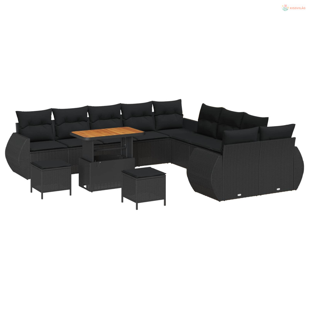 Kerti Kanapé Szett párnával tárolóval 13 pcs Fekete