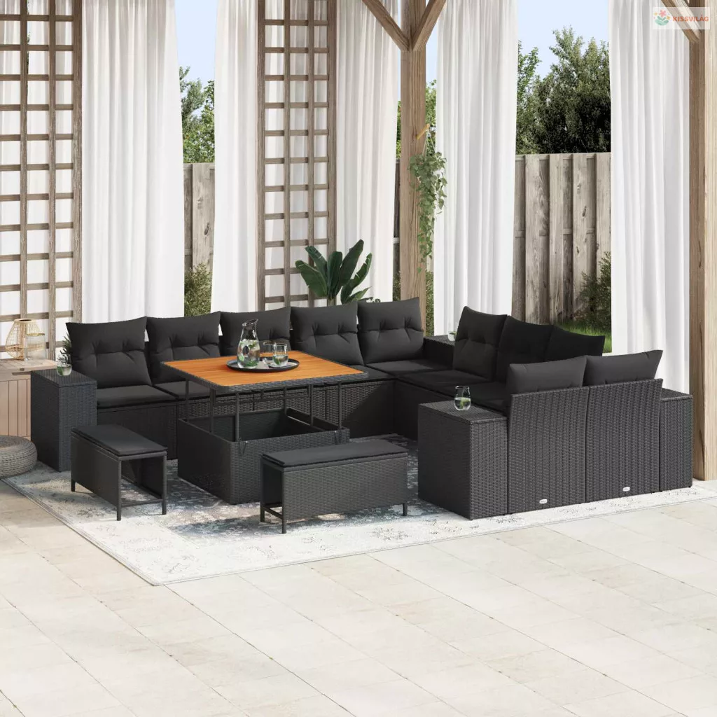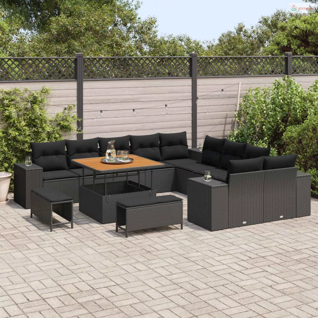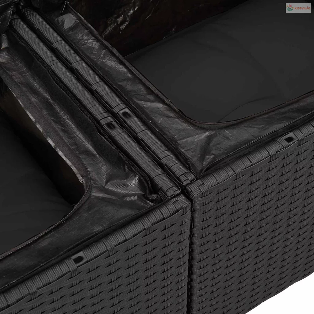 Kerti Kanapé Szett párnával 13 pcs Fekete polirattan