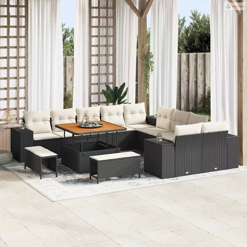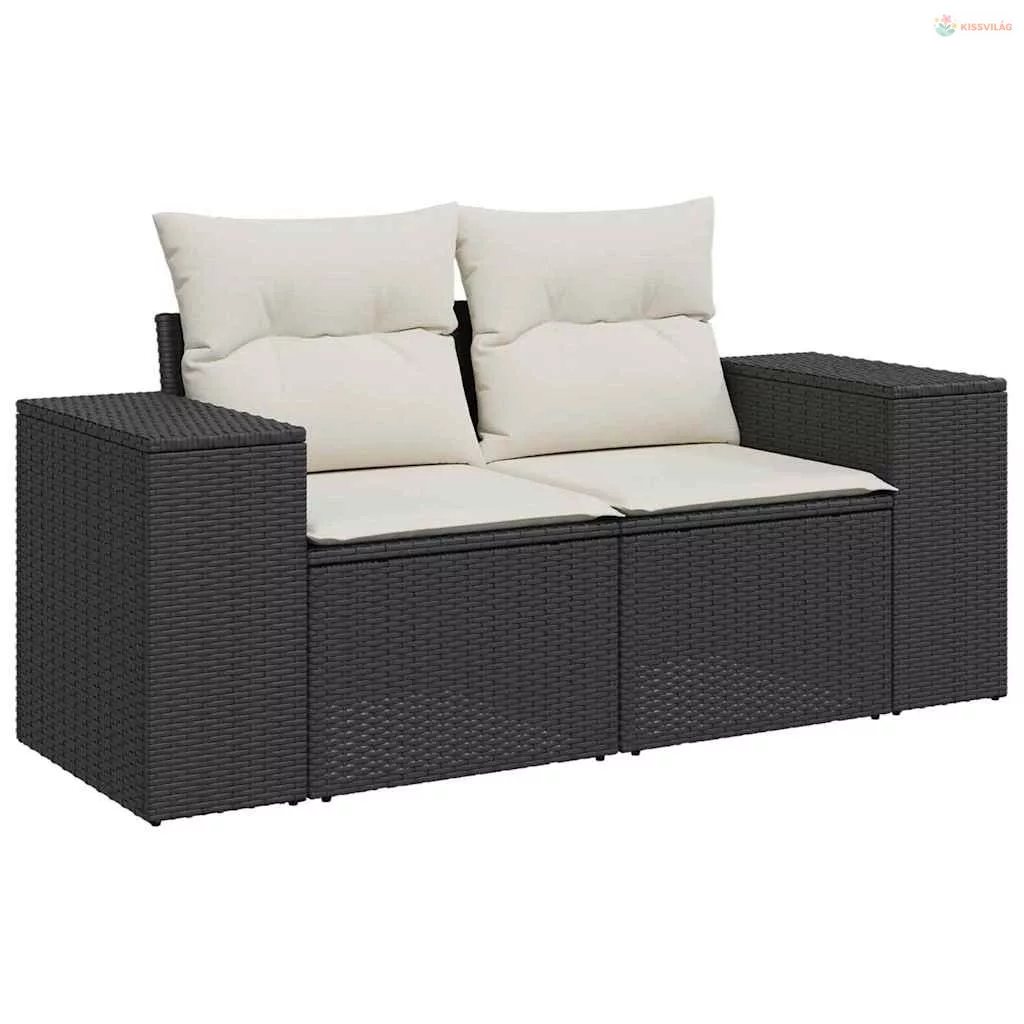 Kerti Kanapé Szett párnával 13 pcs Fekete és Krém polirattan