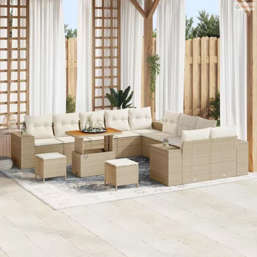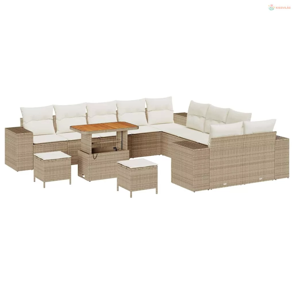 Kerti Kanapé Szett párnával 13 pcs Beige és krém polirattan