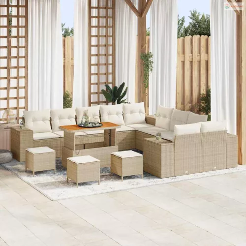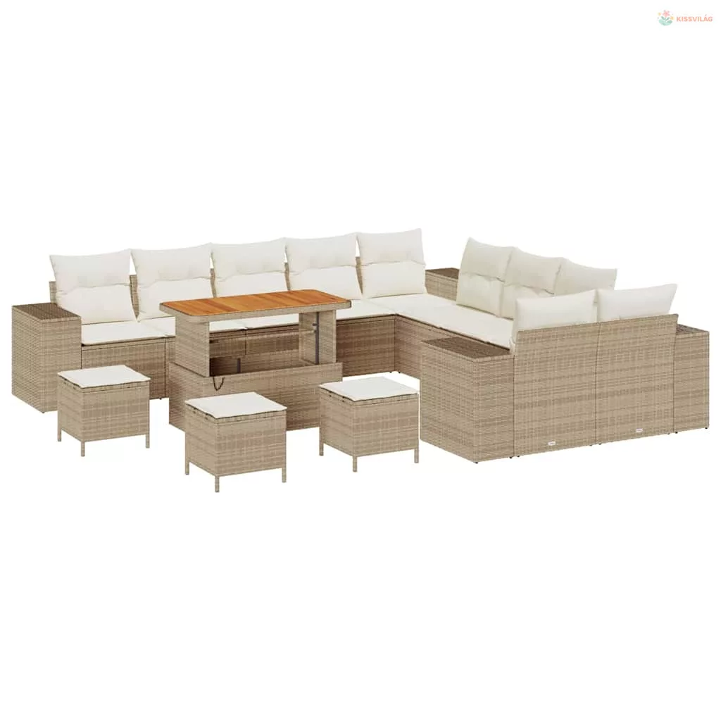 Kerti Kanapé Szett párnával 14 pcs Beige és krém polirattan