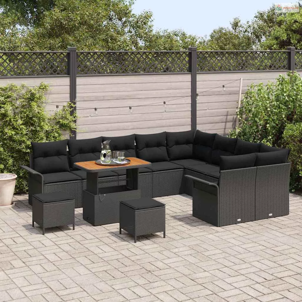 Kerti Kanapé Szett párnával tárolóval párnával 12 pcs Fekete