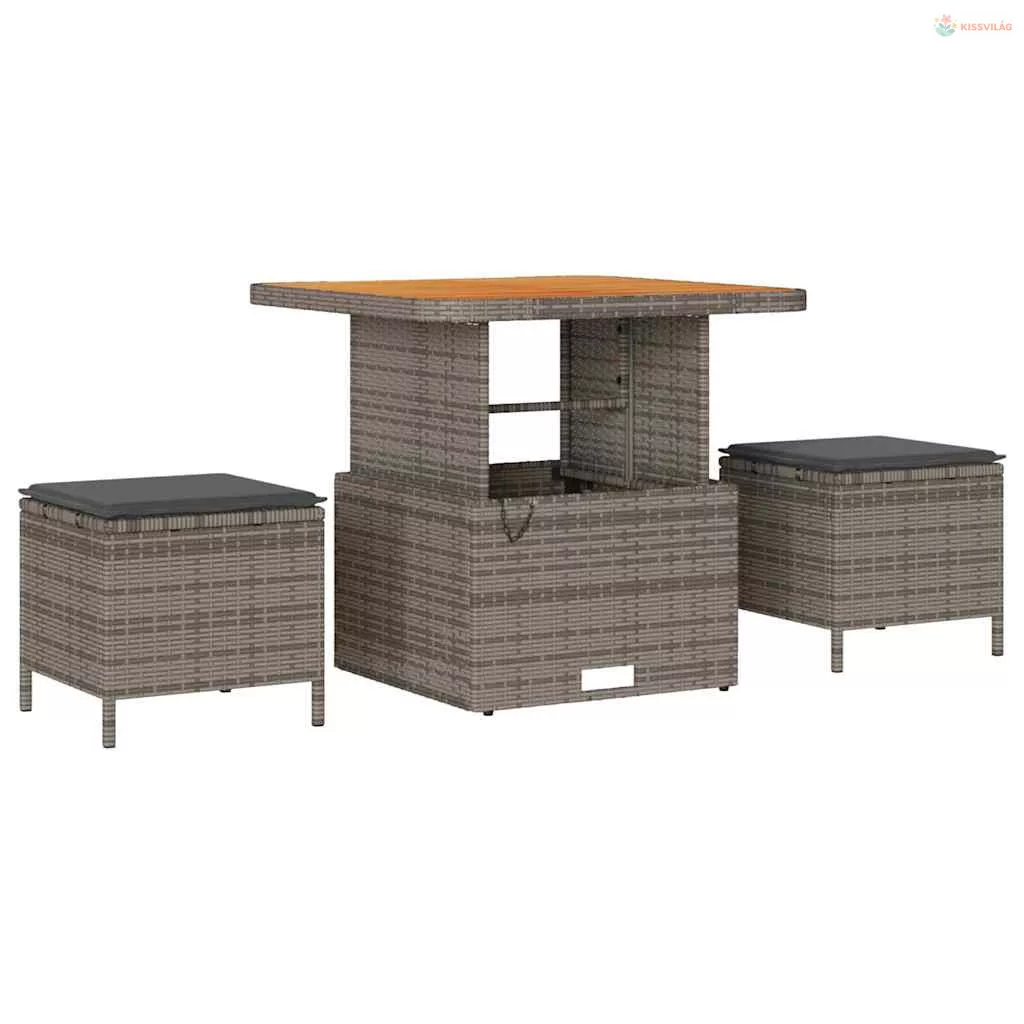 Kényelmes Kapacitás: Ez a kültéri ülőgarnitúra tökéletes sok ember számára, így király találkozókhoz vagy családi bulikhoz. Ülőhelyenként maximum 110 kg-ot bír, így megbízhatóan használható.,UV-Álló: Az UV-álló anyagoknak köszönhetően ez a szett bírja a nap erős sugarait, így megőrzi a klassz külsejét és funkcióját a szezonok során. Tökéletes napfényes helyekhez, megőrzi a szuper állapotát, hosszabbítva a befektetésed életét.,Stílusos Design: A modern dizájn éles vonalakkal és friss hangulattal rendelkezik, ez az ülőgarnitúra minden kültéri térnek feldobja a kinézetét. Kortárs varázsa minden dekorációhoz illik, szuper szép lesz tőle a terasz vagy balkon.,Kültéri Tartósság: Kültéri használatra készült, a szett olyan anyagokból készült, amelyek bírják az időjárás viszontagságait. Hogy mindig jól nézzen ki és tovább tartson, érdemes vízálló huzatot használni, ha nem használod.,Könnyű Karbantartás: Az ülések sima felülete megkönnyíti a takarítást, így minimális erőfeszítéssel megőrizheted a jó állapotát. Ha rendszeresen karbantartod, élvezheted a csinos, funkcionális kültéri üléseket, amelyek mindig letisztultak.