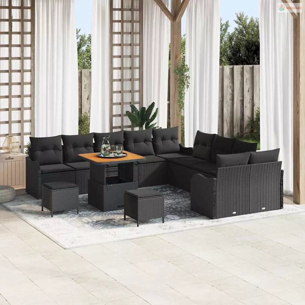 Kerti Kanapé Szett párnával tárolóval 13 pcs Fekete