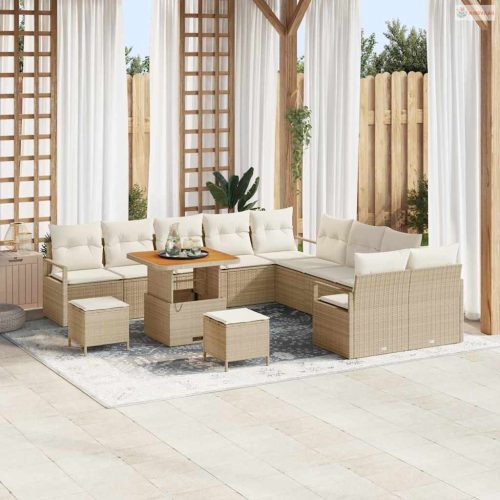 Kerti Kanapé Szett párnával tárolóval 13 pcs Beige és krém