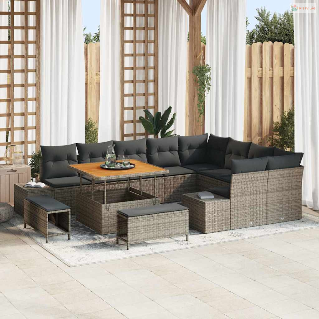 Kerti Kanapé Szett párnával tárolóval 12 pcs Szürke Poli rattan