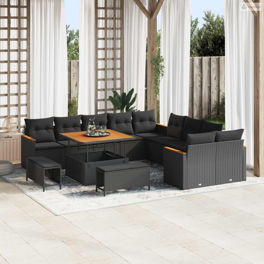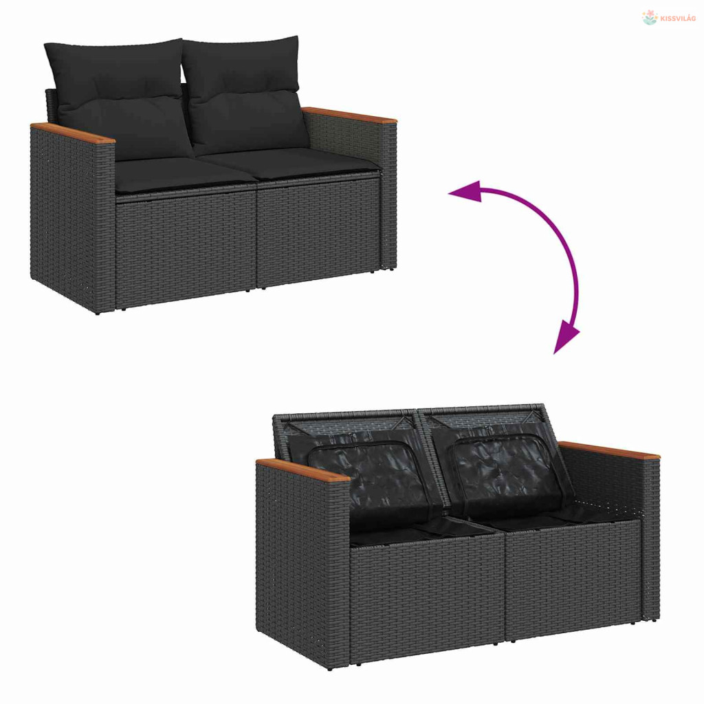 Kerti Kanapé Szett párnával 13 pcs Fekete polirattan