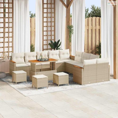 Kerti Kanapé Szett párnával 18 pcs Beige és krém polirattan