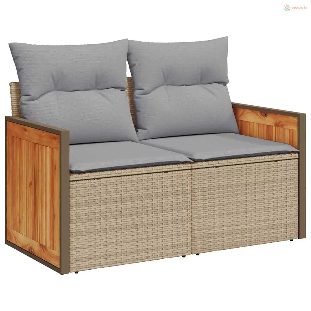 Ez az elegáns moduláris kerti kanapé szett laza menedéket kínál a kertedben vagy a teraszodon. Modern dizájnja, amely a funkcionalitásra és az egyszerűségre fókuszál, minden kültéri környezethez jól passzol. A tartós poli rattan és a tömör akácfa kombinációjának köszönhetően a szett tökéletes helyet biztosít a pihenésre vagy a szórakozásra, legyen szó egy kisebb összejövetelről vagy egy baráti lazításról.