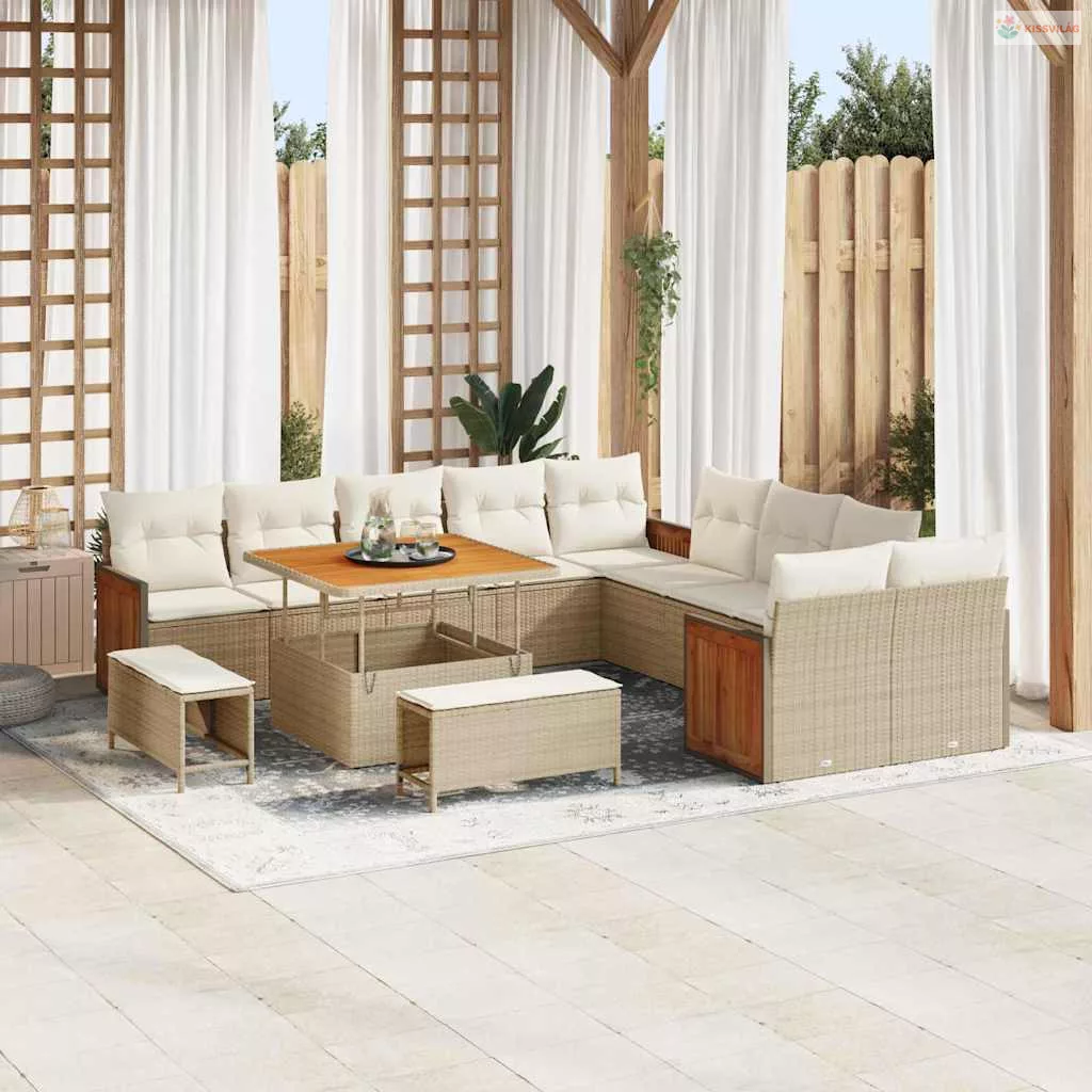 Kerti Kanapé Szett párnával 17 pcs Beige és krém polirattan