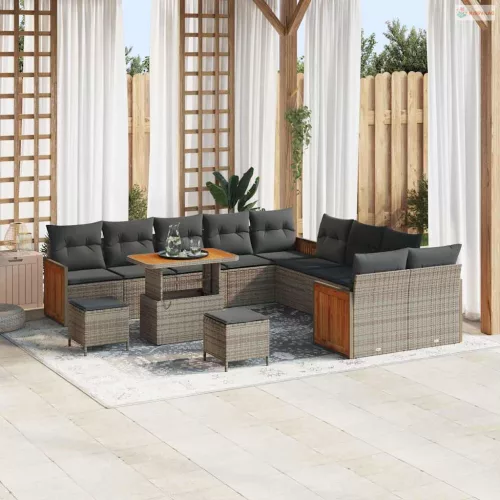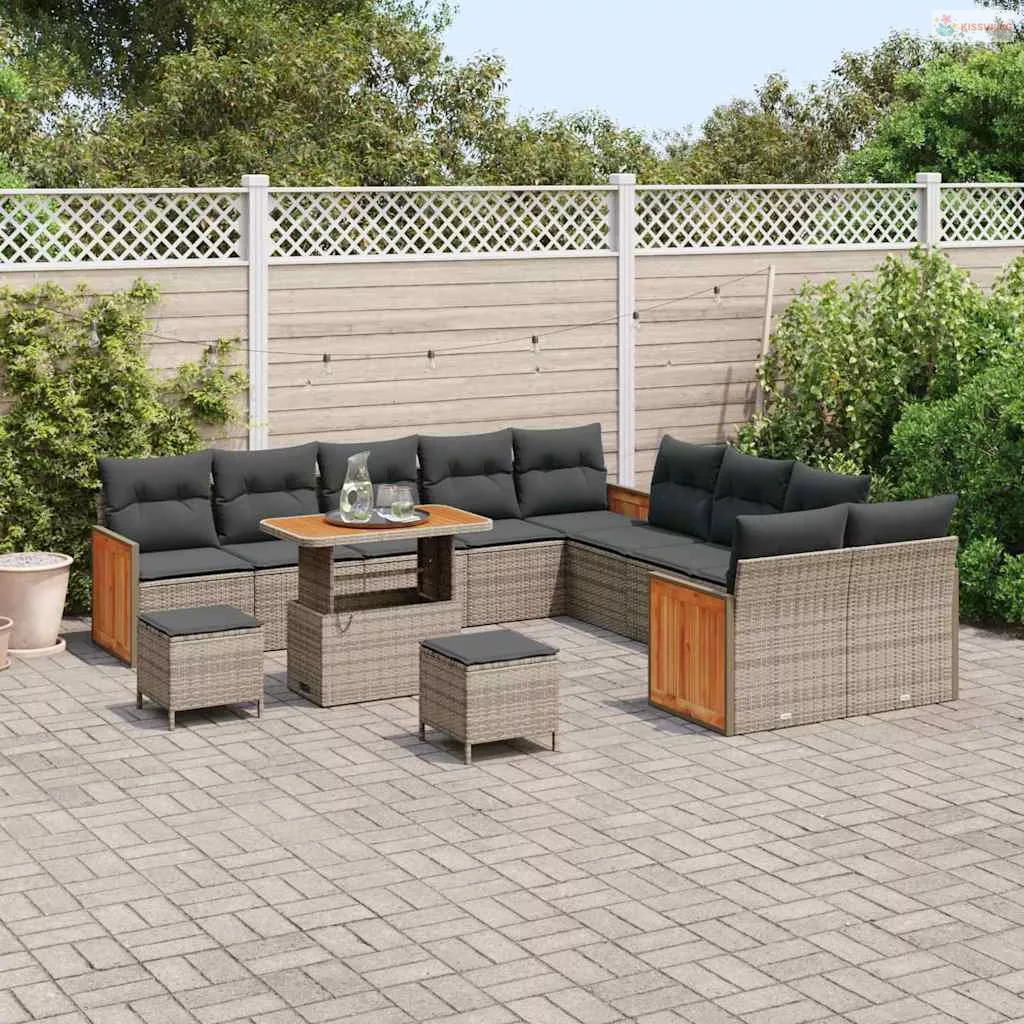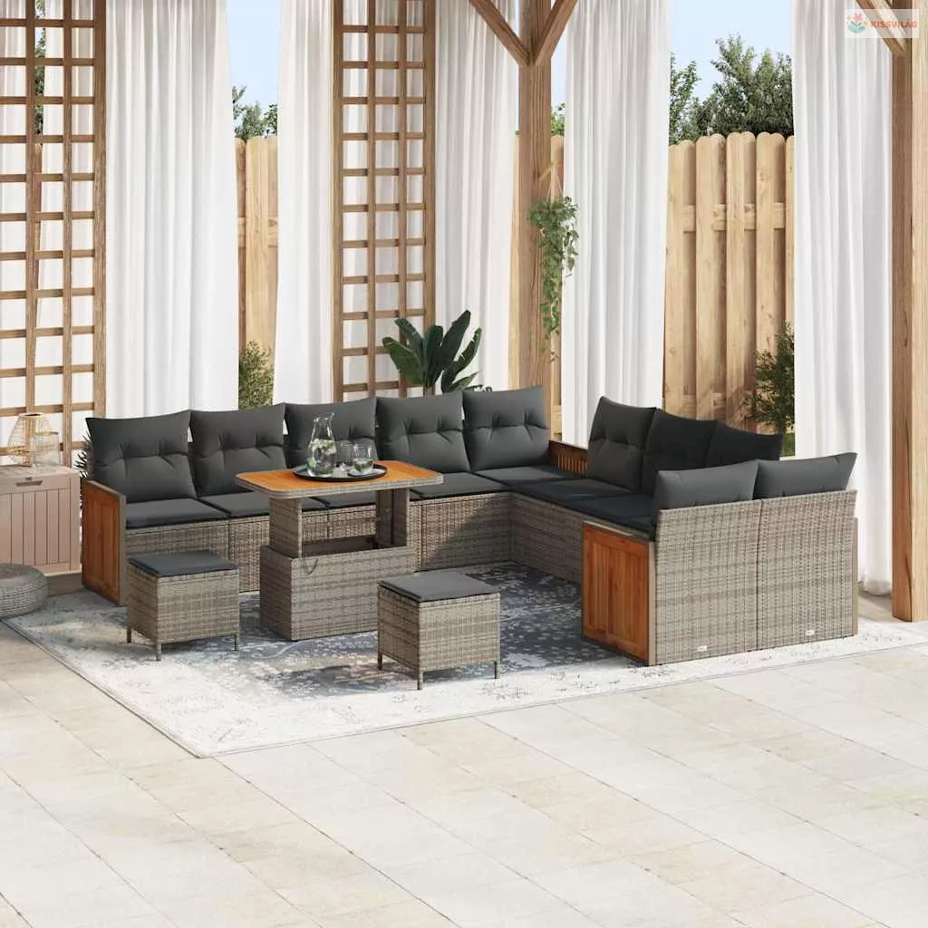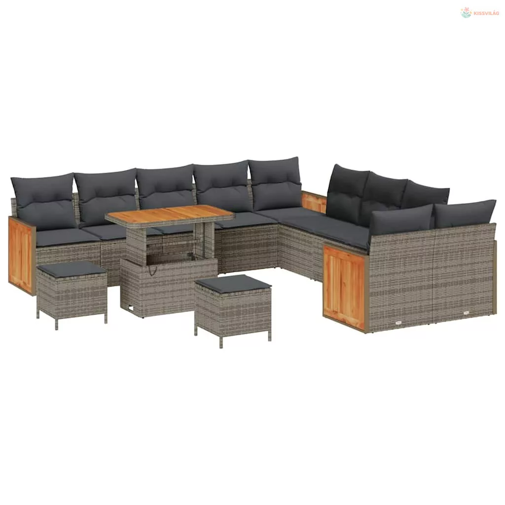 Kerti Kanapé Szett párnával 13 pcs Szürke polirattan