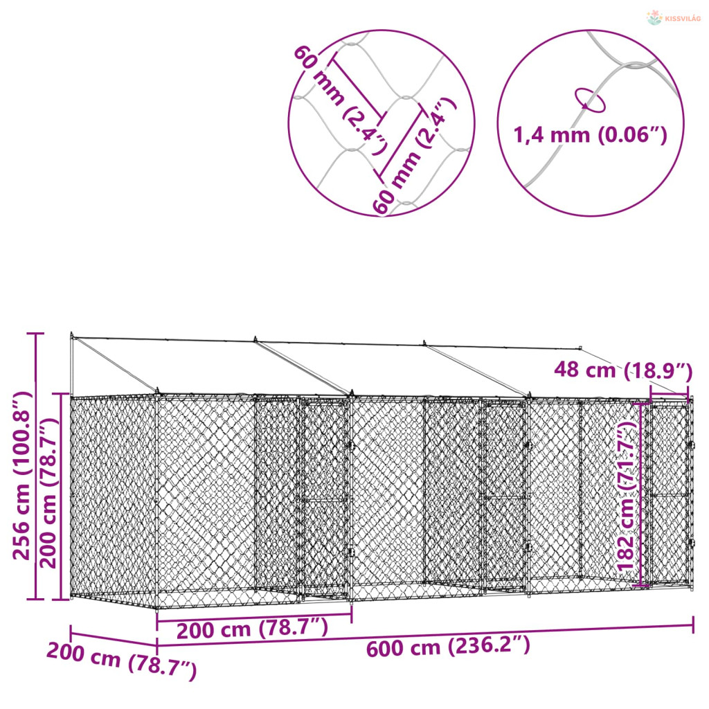 Kutya ketrec tetővel Ezüst 600 x 200 x 256 cm Acél és PE