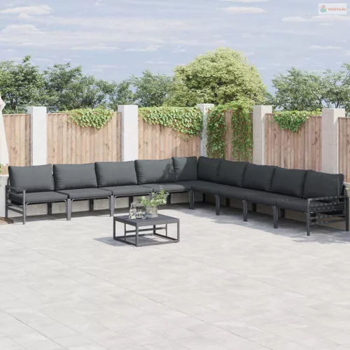 Kerti Kanapé Szett párnával 9 pcs Fekete Acél
