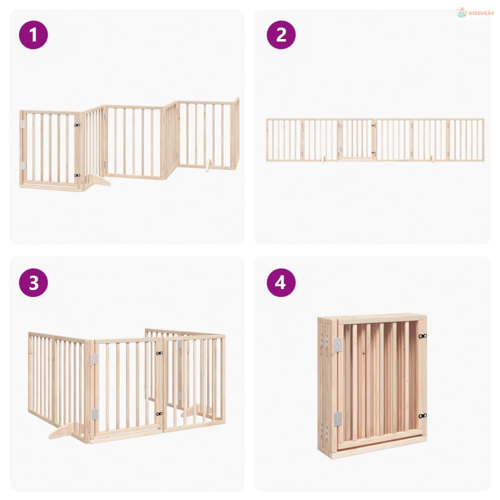 Összecsukható ajtós kutyakapu 6 panellel, 300 cm, nyárfa