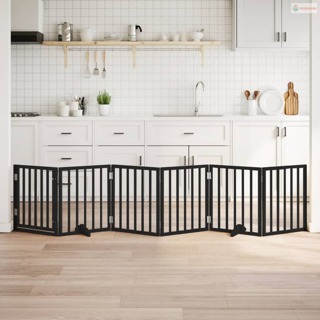 Fekete nyárfa 6 paneles összecsukható kutyakapu ajtóval 300 cm