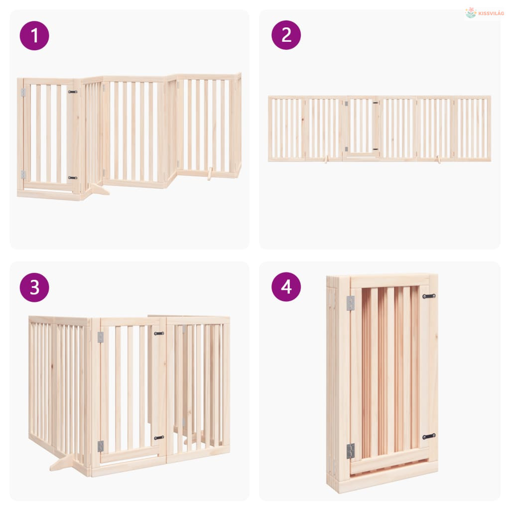 Összecsukható ajtós kutyakapu 6 panellel, 300 cm, nyárfa