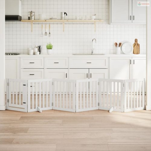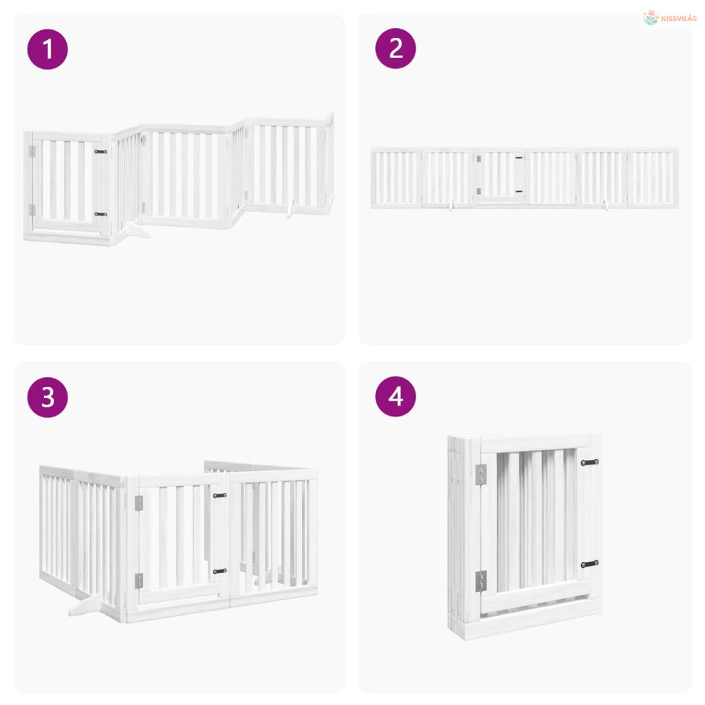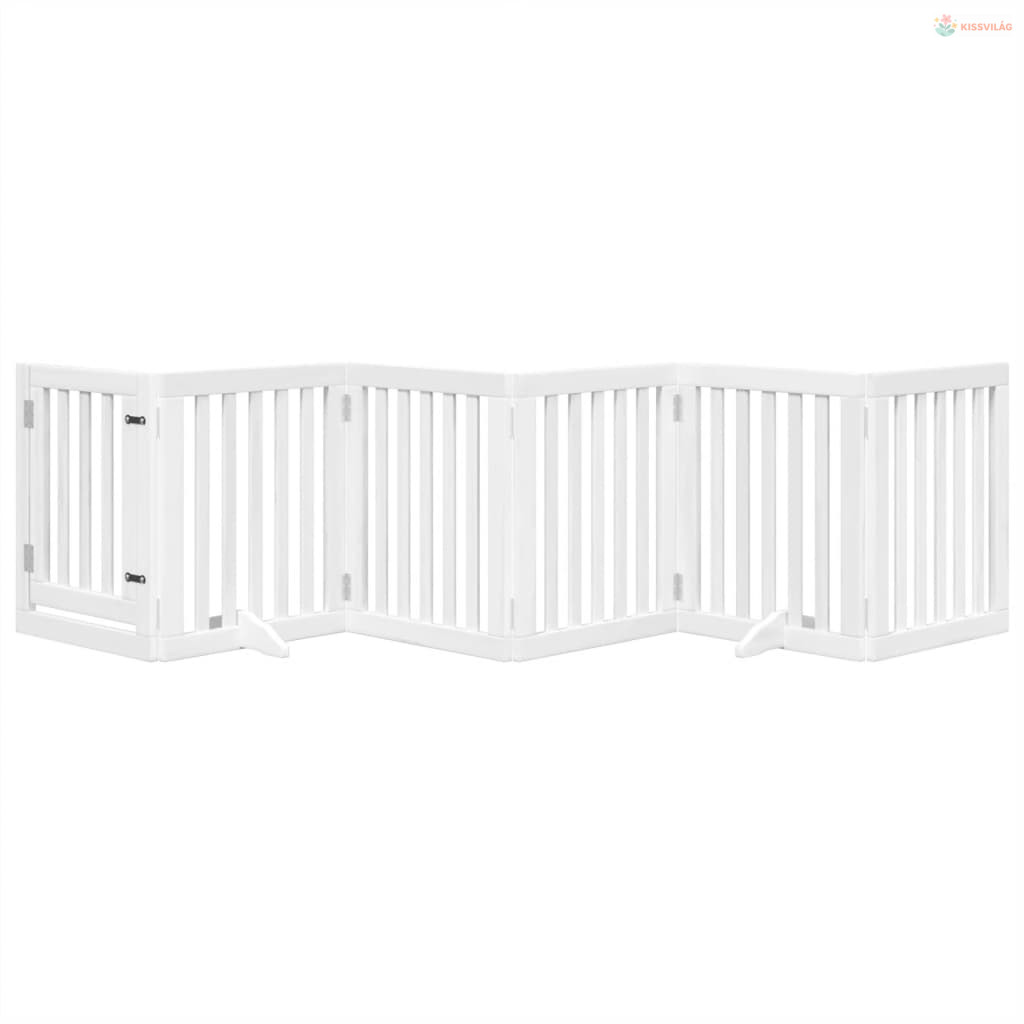 Fehér nyárfa 6 paneles összecsukható kutyakapu ajtóval 300 cm
