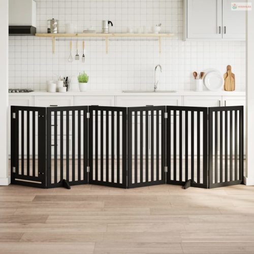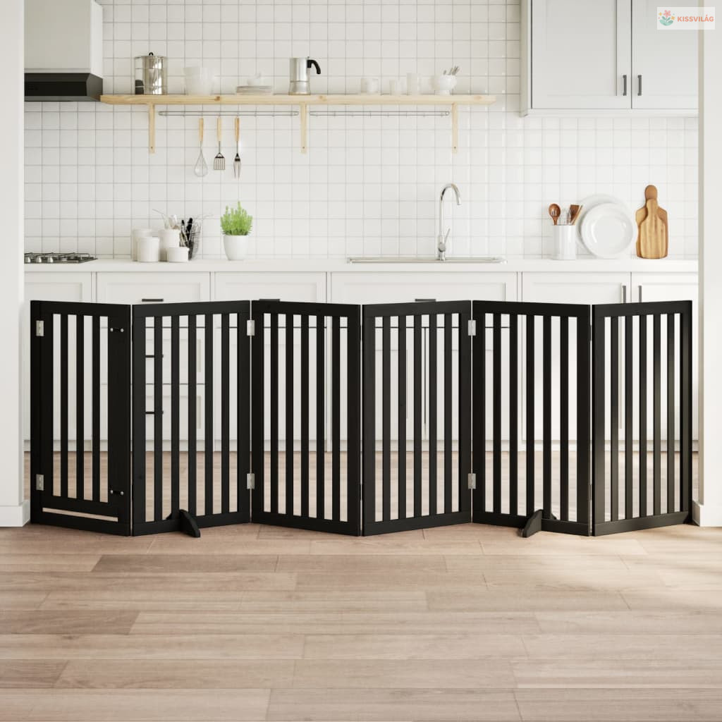 Fekete nyárfa 6 paneles összecsukható kutyakapu ajtóval 300 cm