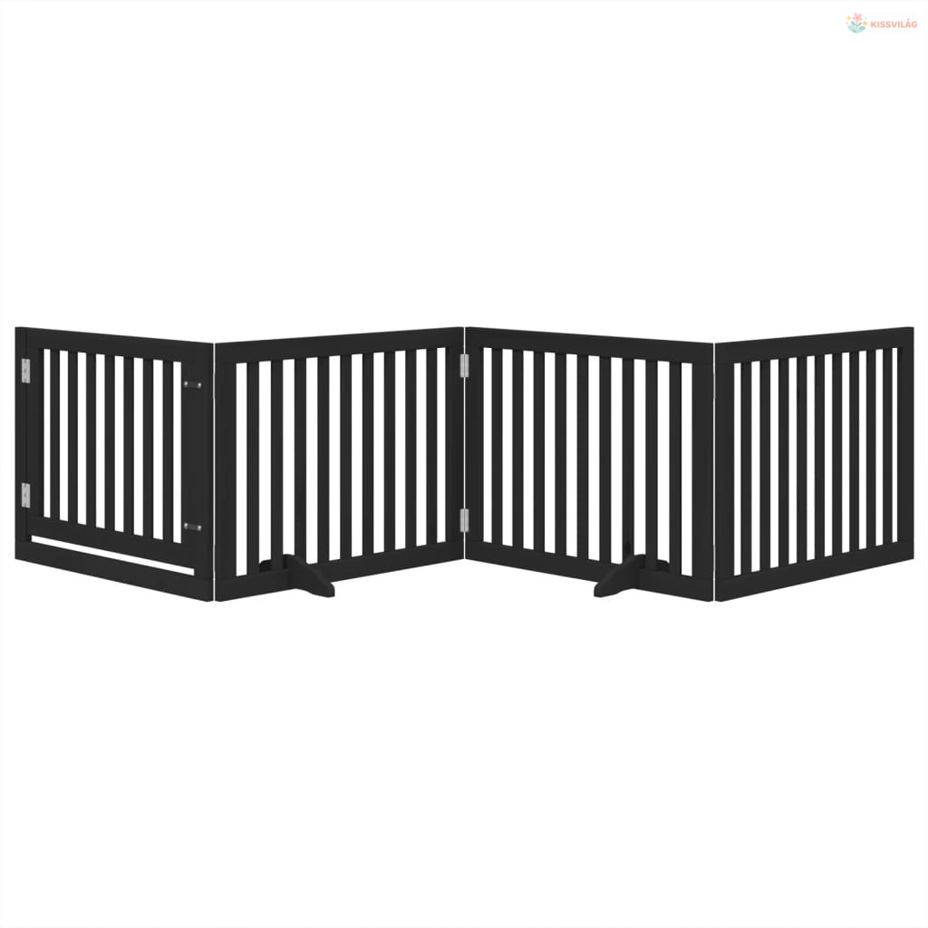 Fekete nyárfa 4 paneles összecsukható kutyakapu ajtóval 320 cm
