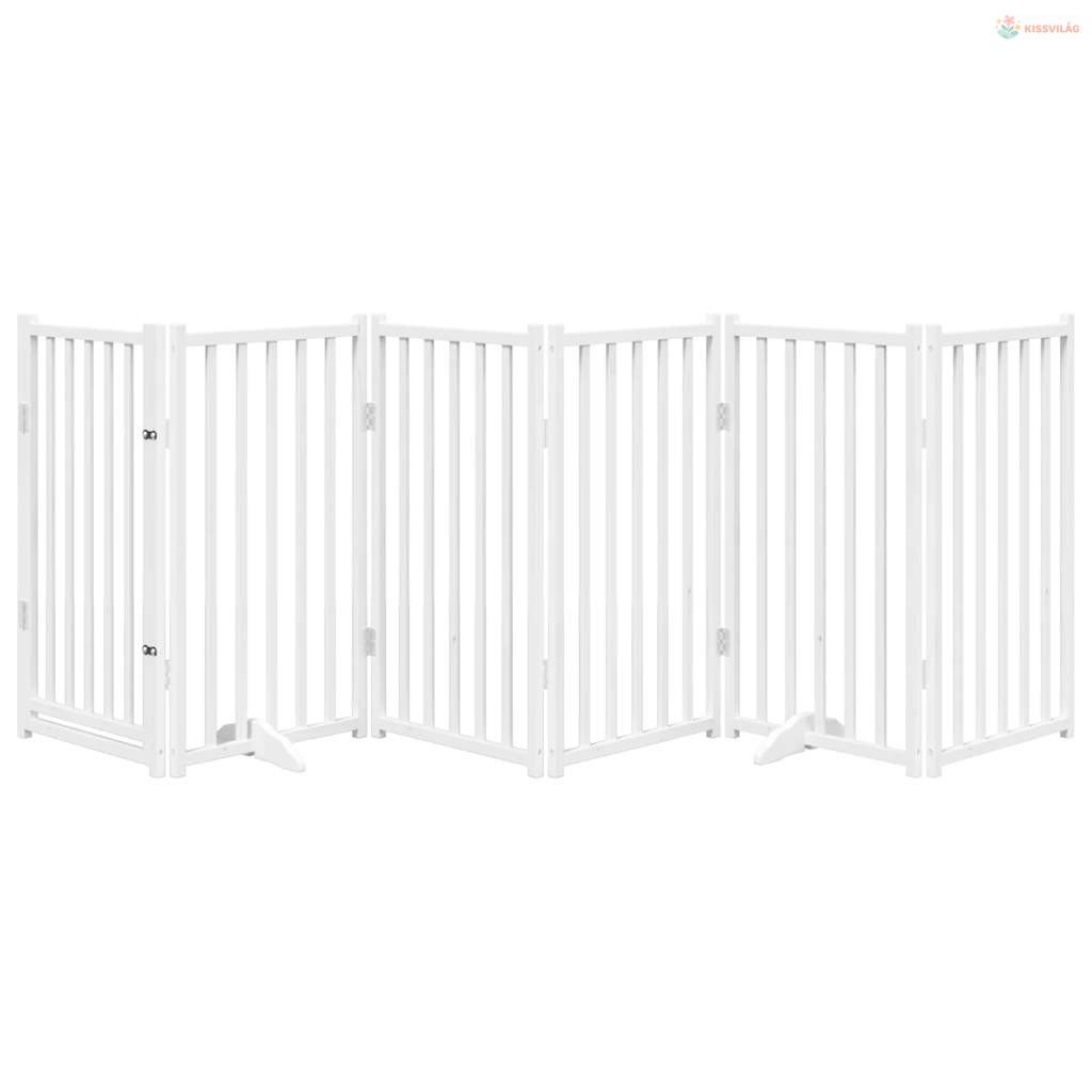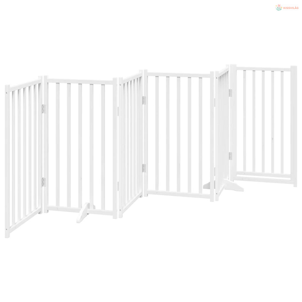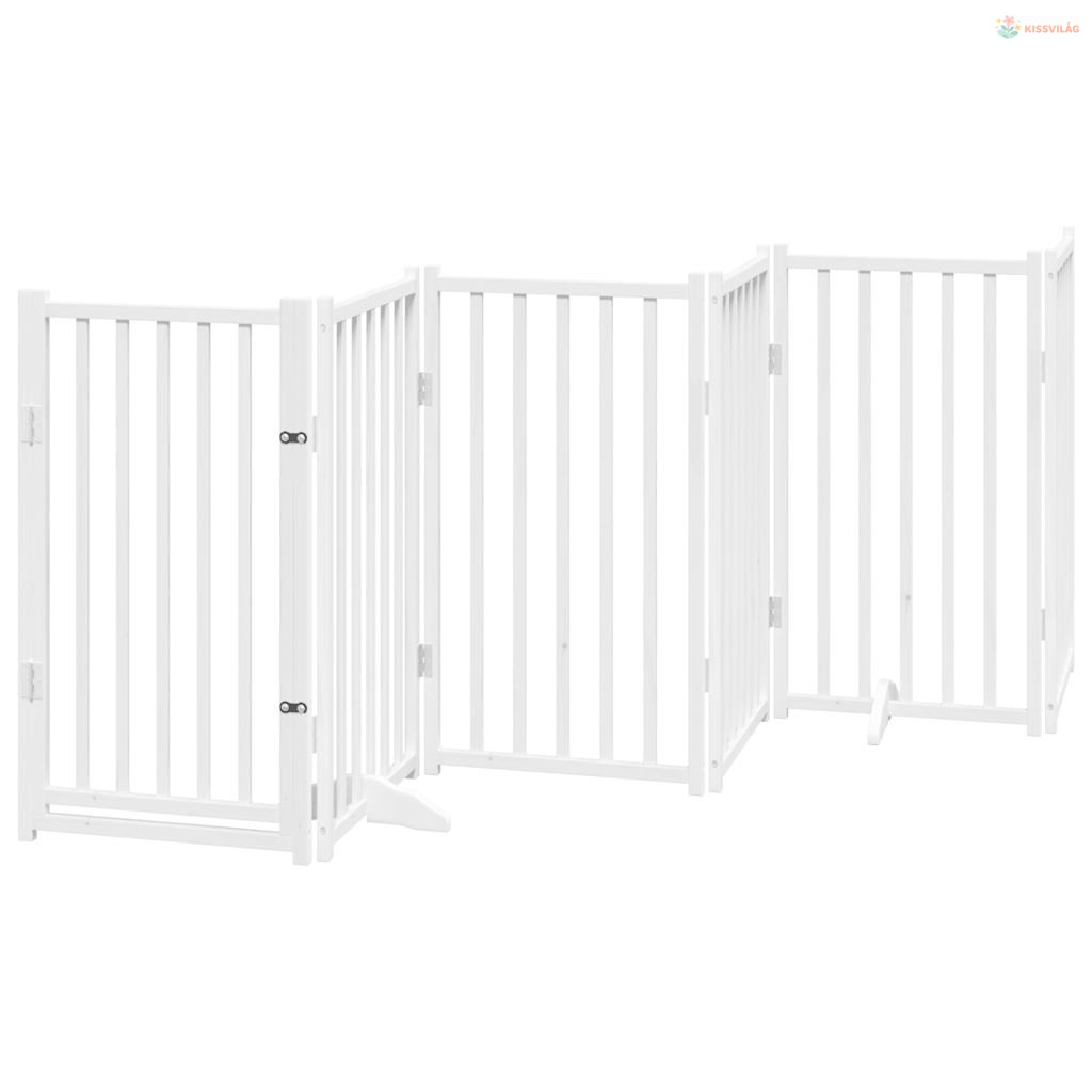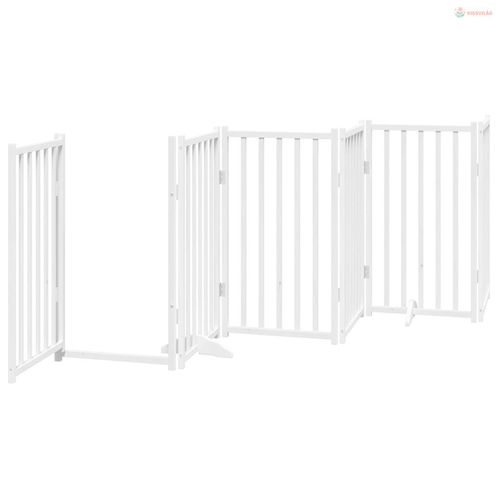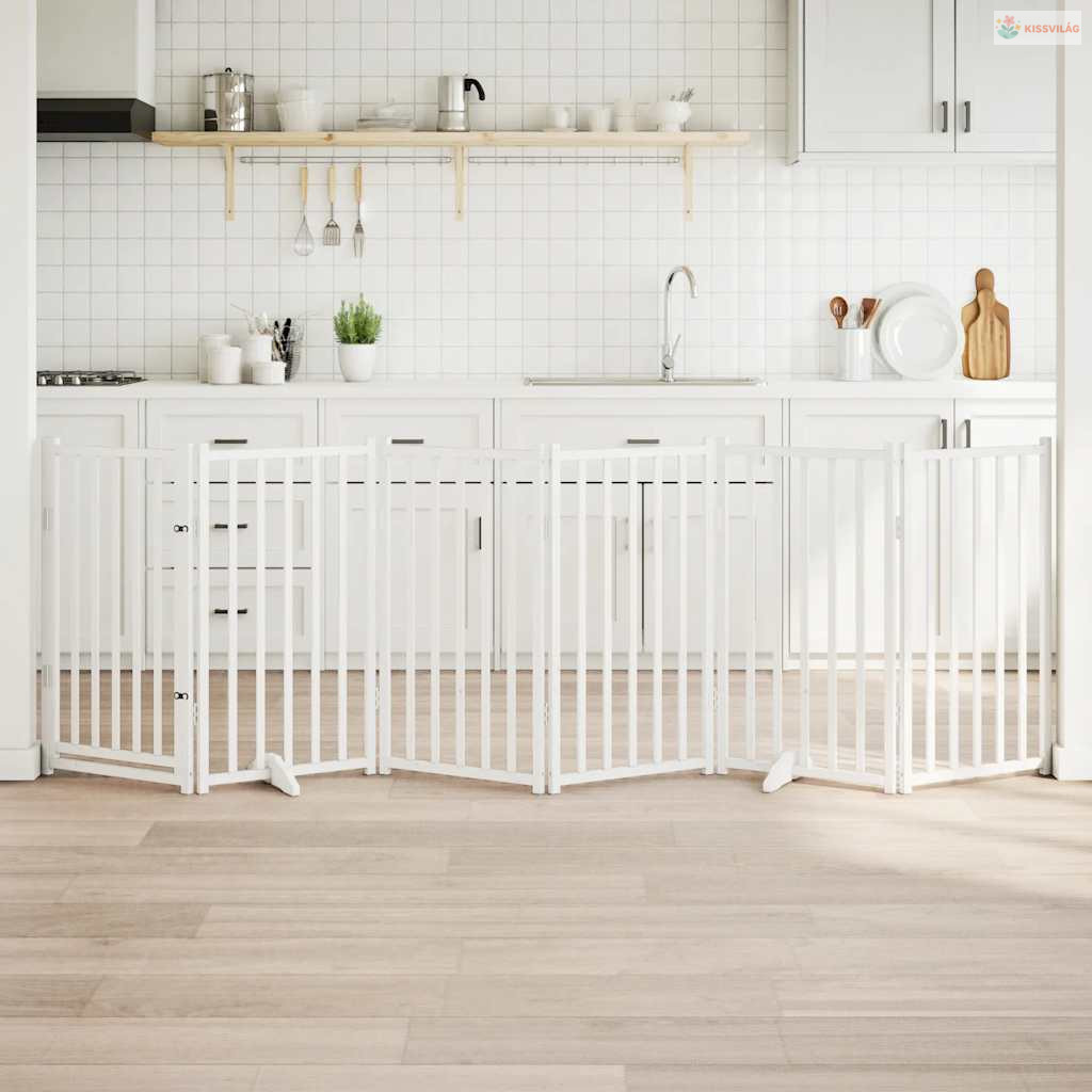 Fehér tömör fa 6 paneles összecsukható kutyakapu ajtóval 300 cm