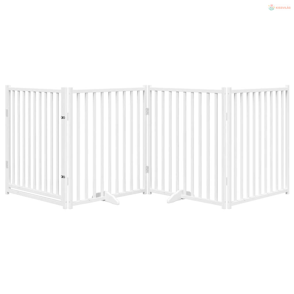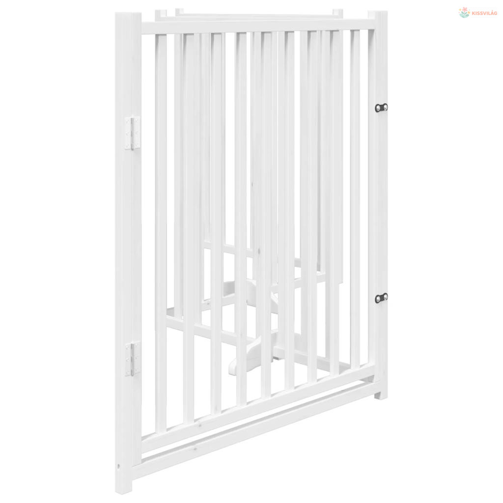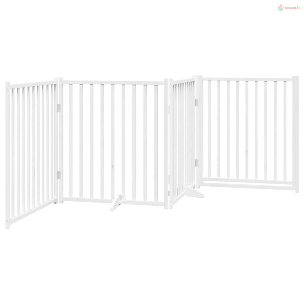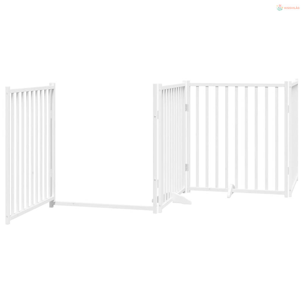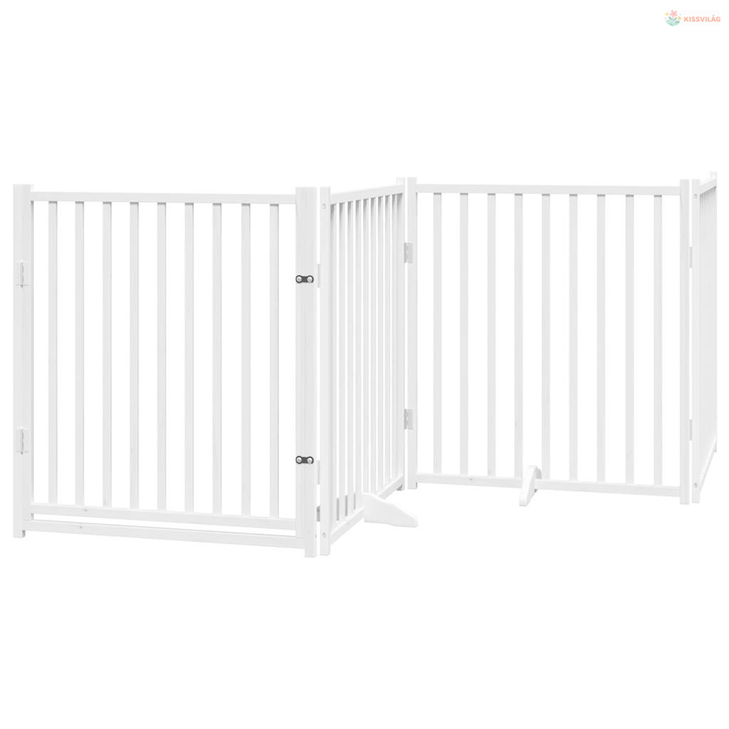 Fehér tömör fa 4 paneles összecsukható kutyakapu ajtóval 320 cm