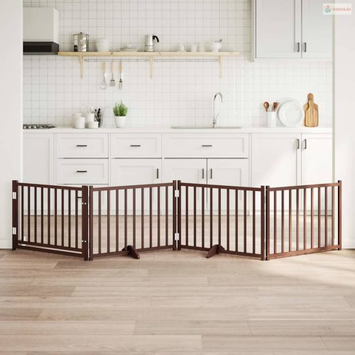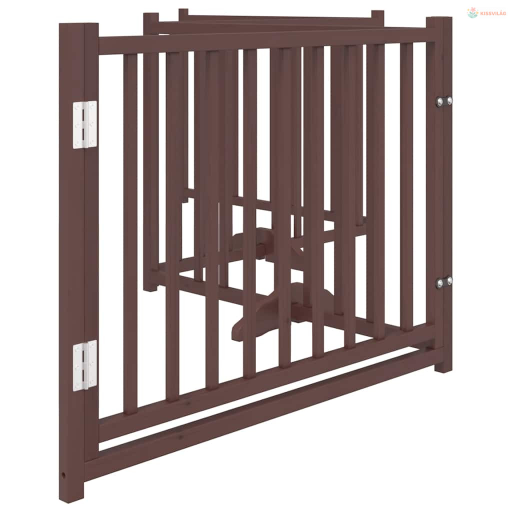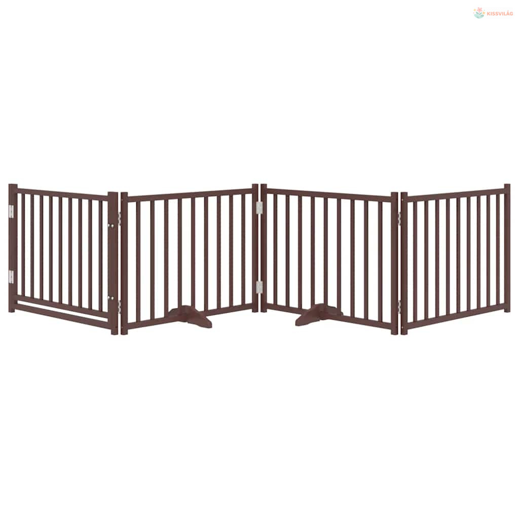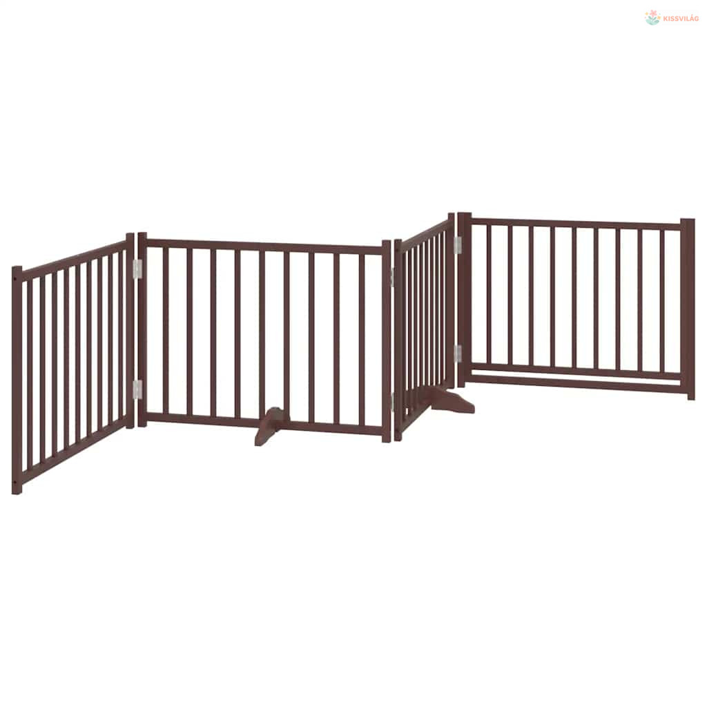 Barna tömör fa 4 paneles összecsukható kutyakapu ajtóval 320 cm