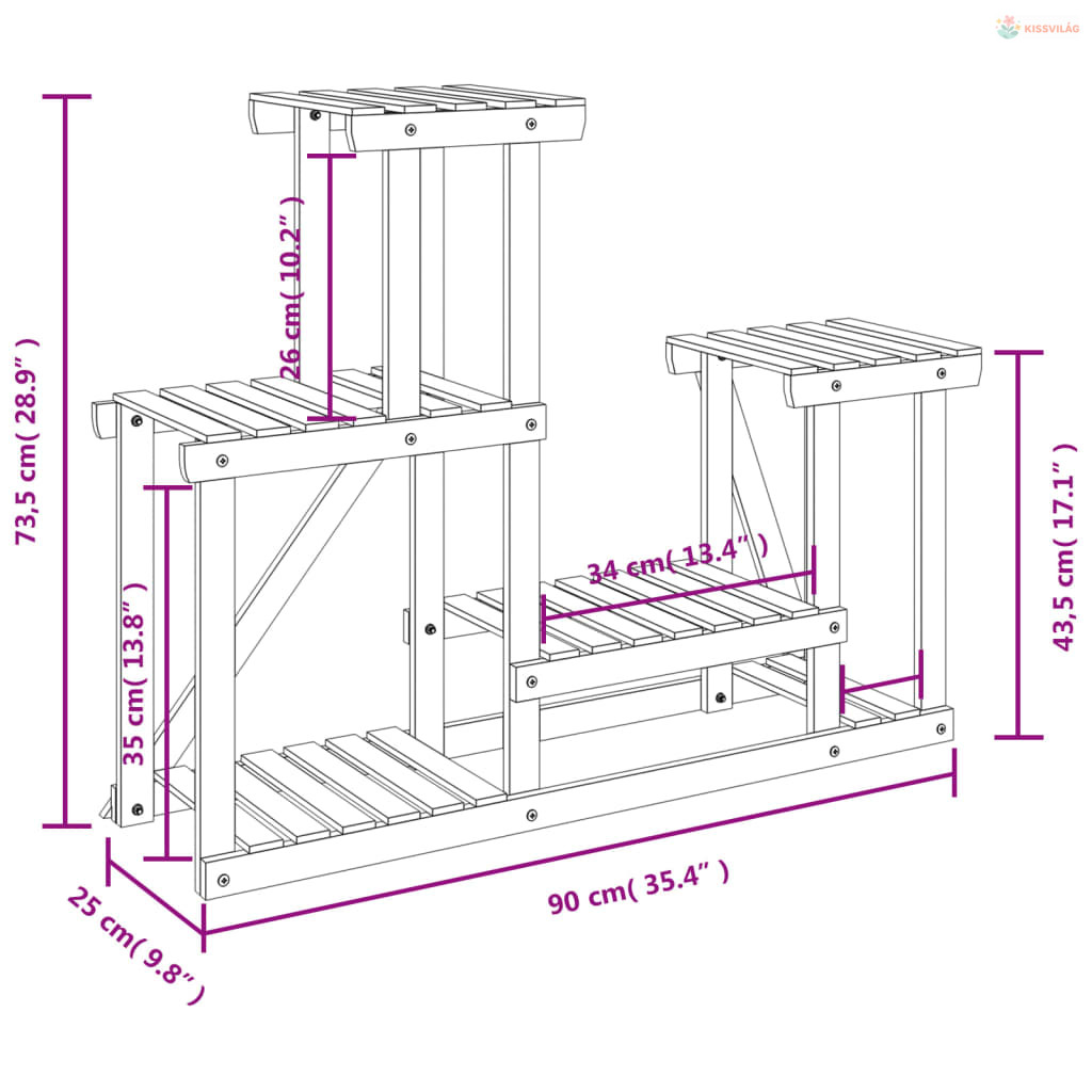 Tömör fenyőfa virágtartó állvány 90 x 25 x 73,5 cm