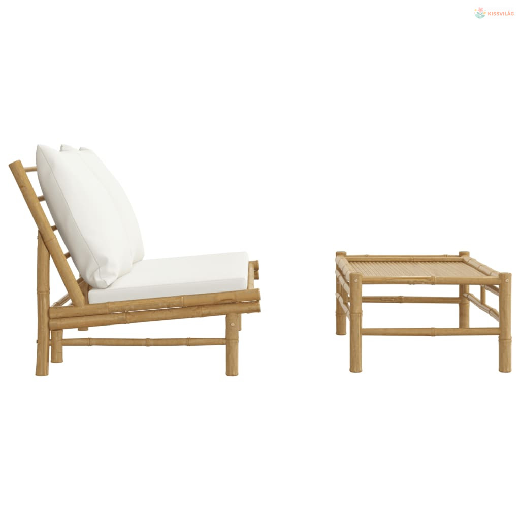 2 részes bambusz kerti ülőgarnitúra krémfehér párnákkal