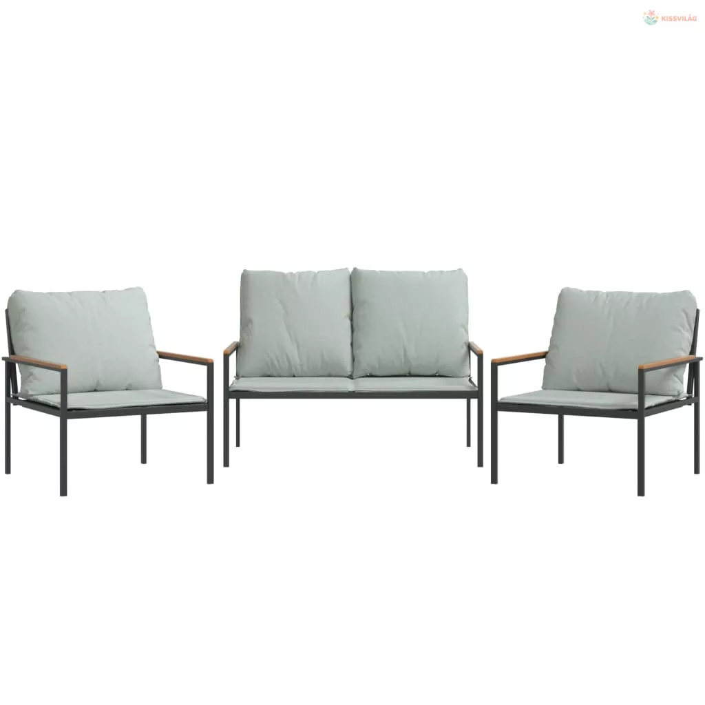 3 részes antracitszürke acél kerti ülőgarnitúra párnákkal