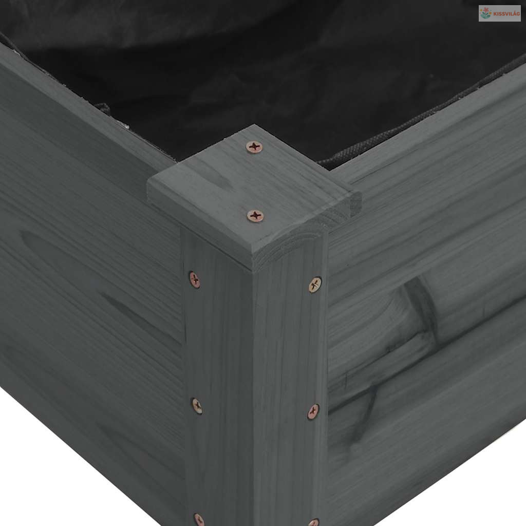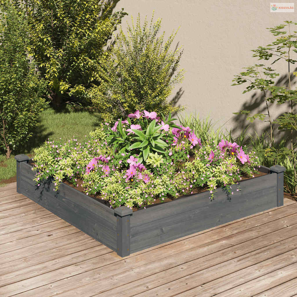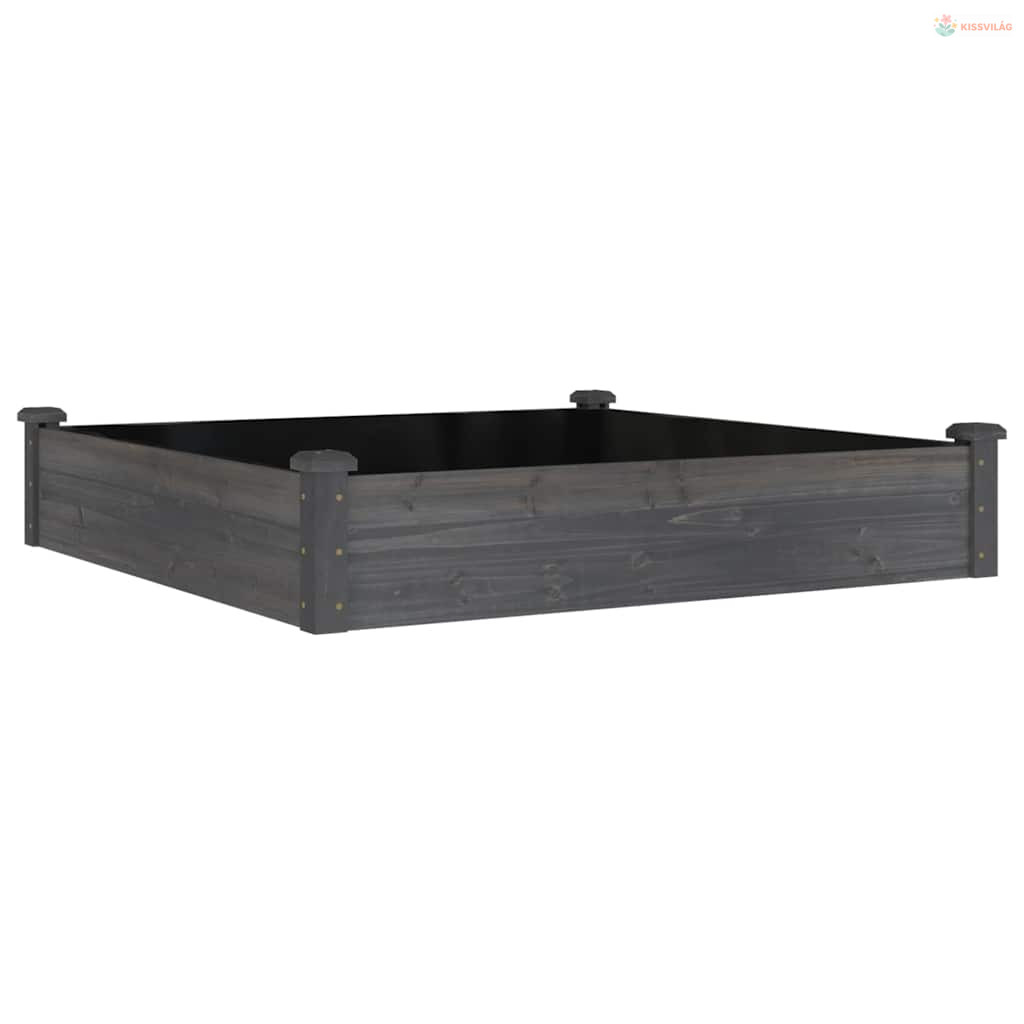 Szürke tömör fenyőfa kerti magaságyás béléssel 120x120x25 cm