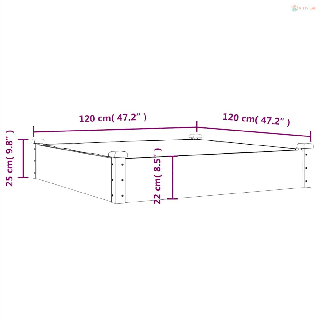 • Nyitott alj: A zöldségágyás nyitott alja biztosítja a jó vízelvezetést és a növények légáteresztő képességét.