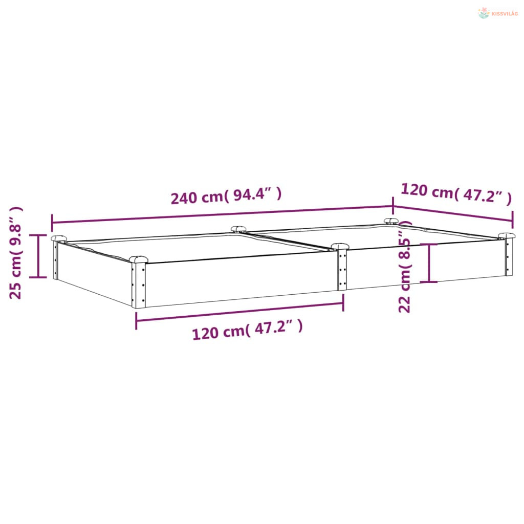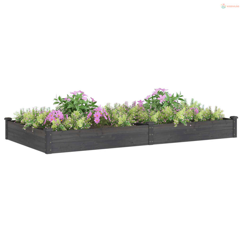 Szürke tömör fenyőfa kerti magaságyás béléssel 240x120x25 cm