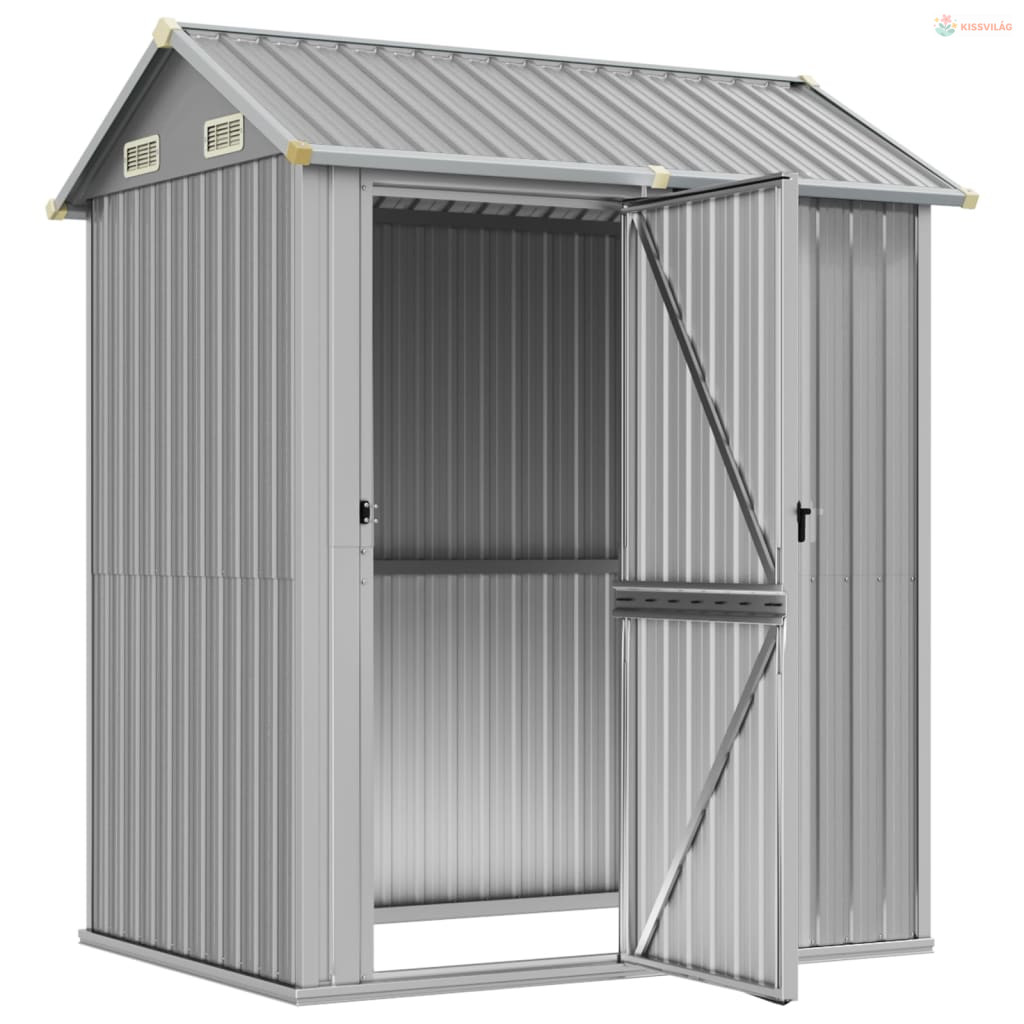 Világosszürke horganyzott acél kerti fészer 192 x 152,5 x 237 cm