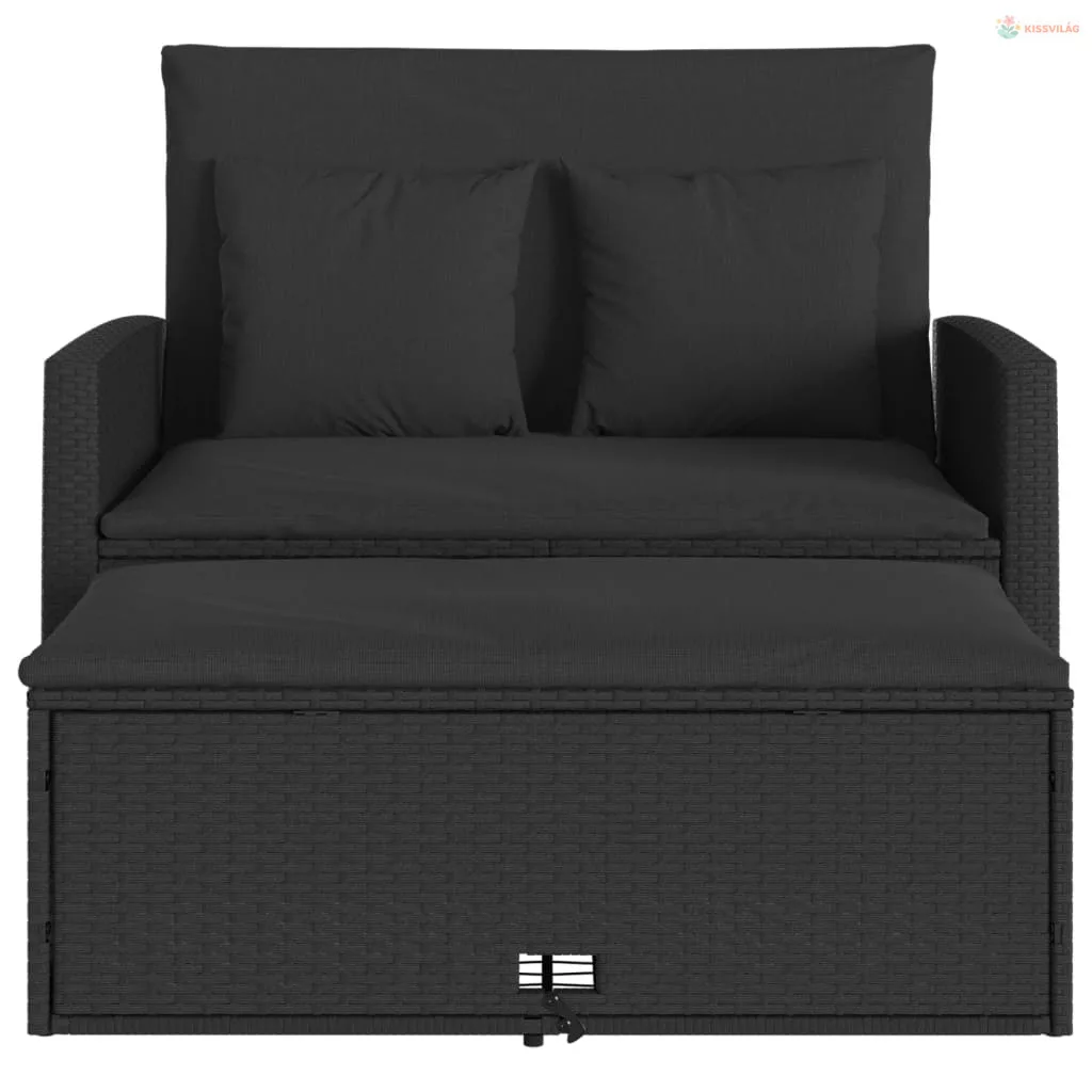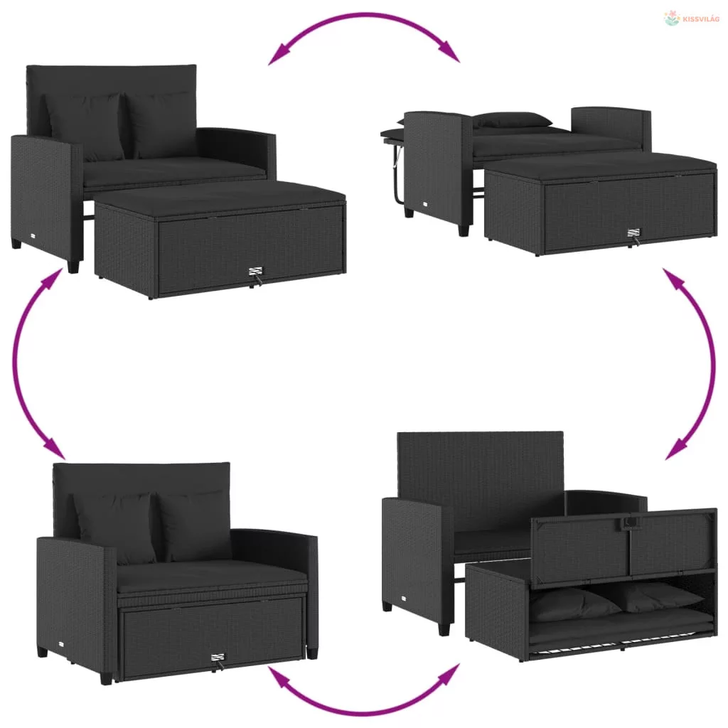 • Sokoldalú funkcionalitás: Ez a kerti bútor 2 személyes padként vagy kanapéként használható. Könnyedén ággyá alakítható, ha hátra dönti a háttámlát és kihúzza a zsámolyt a pad alól. A háttámlák mögötti tartópanelek stabilabbá teszik az ágyat.