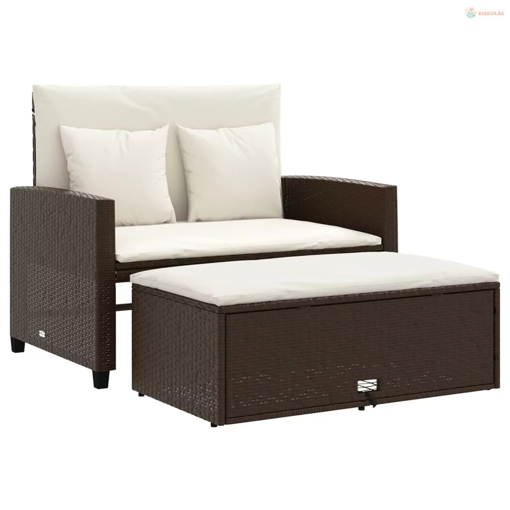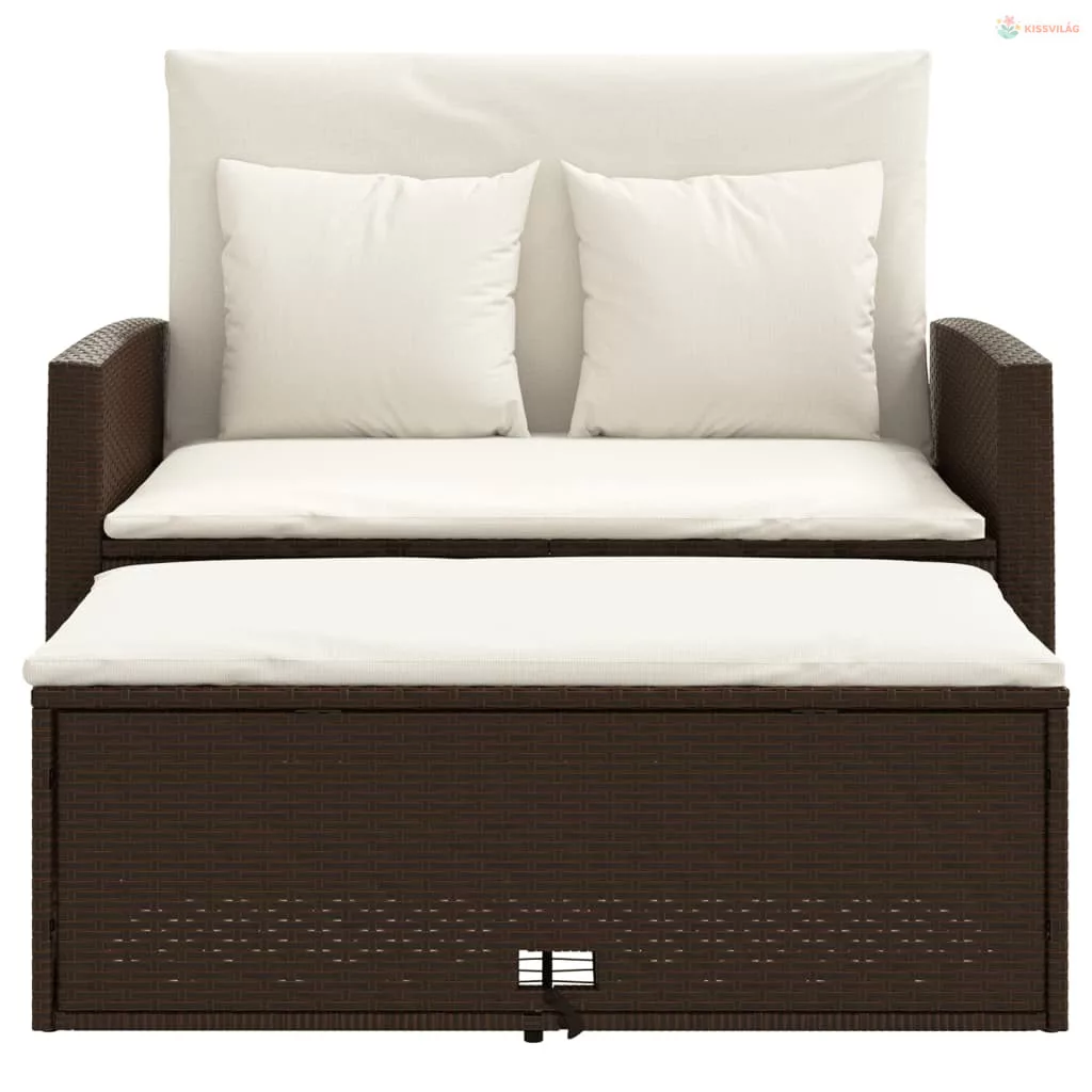 • Sokoldalú funkcionalitás: Ez a kerti bútor 2 személyes padként vagy kanapéként használható. Könnyedén ággyá alakítható, ha hátra dönti a háttámlát és kihúzza a zsámolyt a pad alól. A háttámlák mögötti tartópanelek stabilabbá teszik az ágyat.