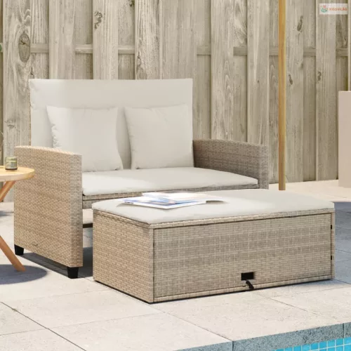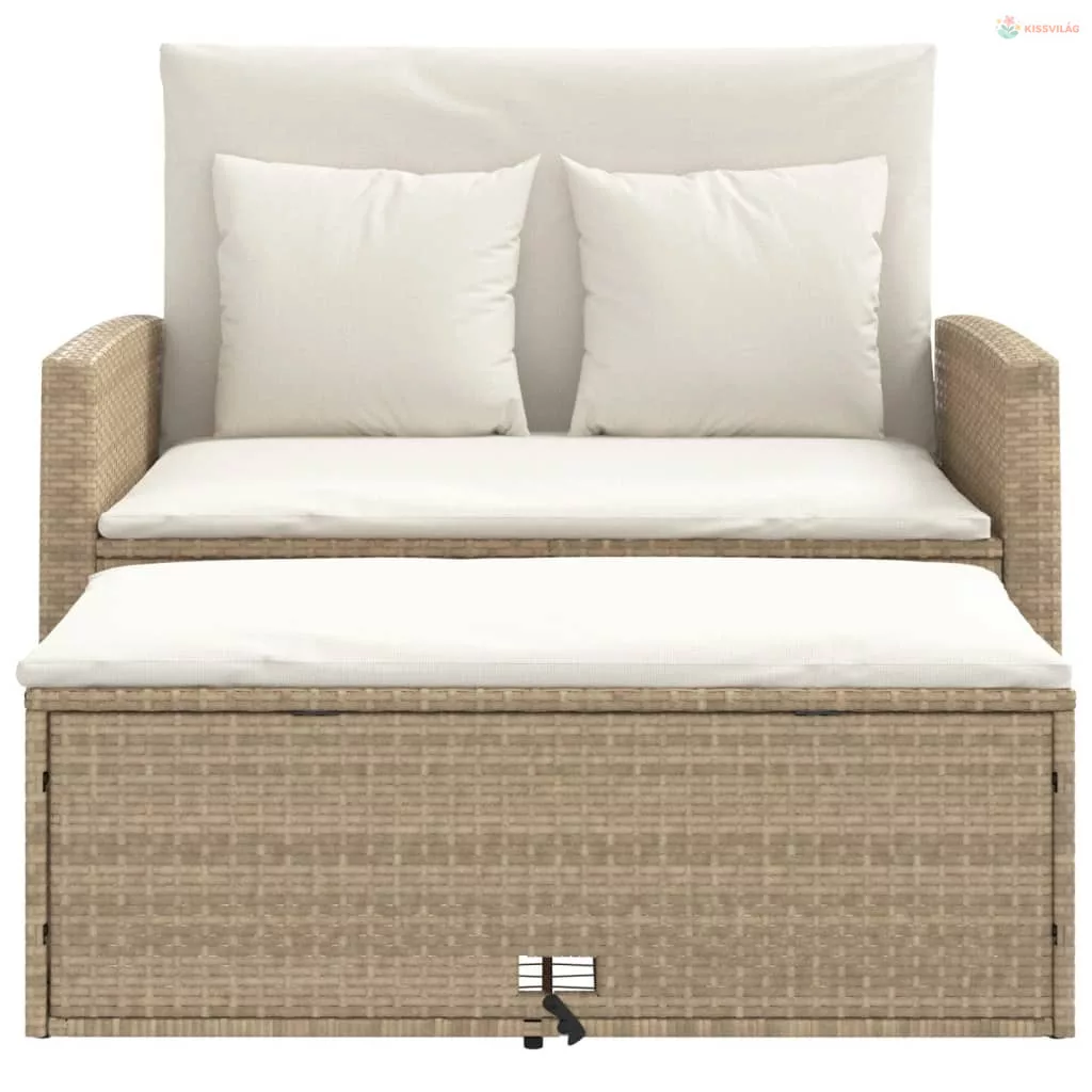2 személyes bézs polyrattan kerti kanapé párnával