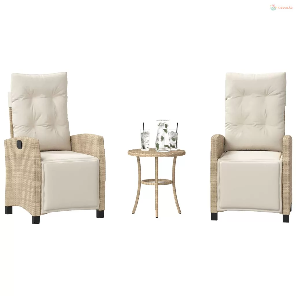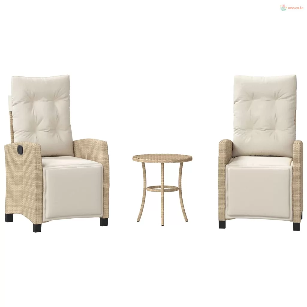 3 részes bézs polyrattan bisztrógarnitúra párnával