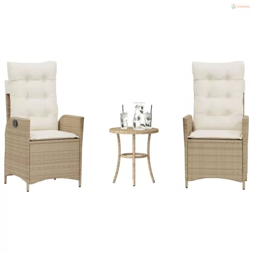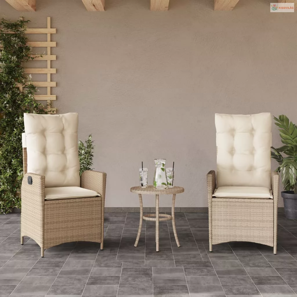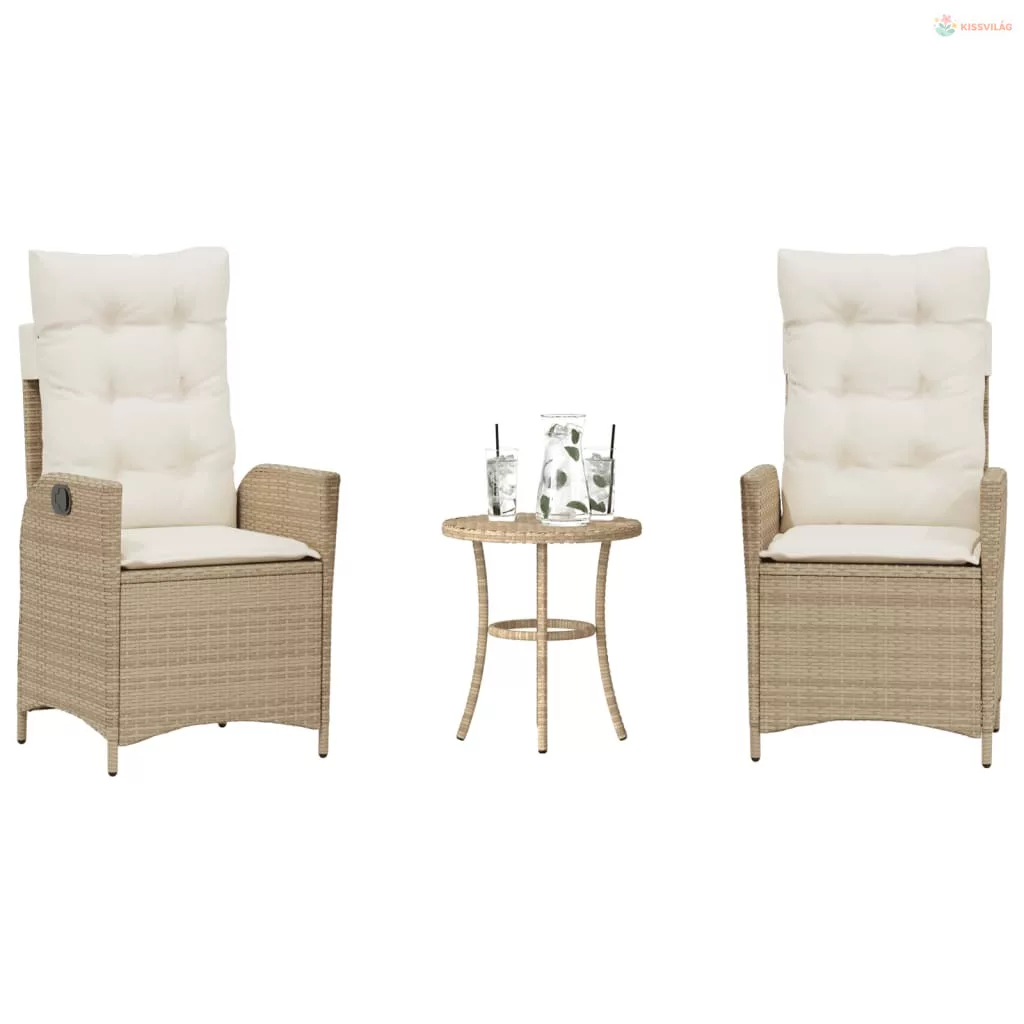 3 részes bézs polyrattan bisztrógarnitúra párnával