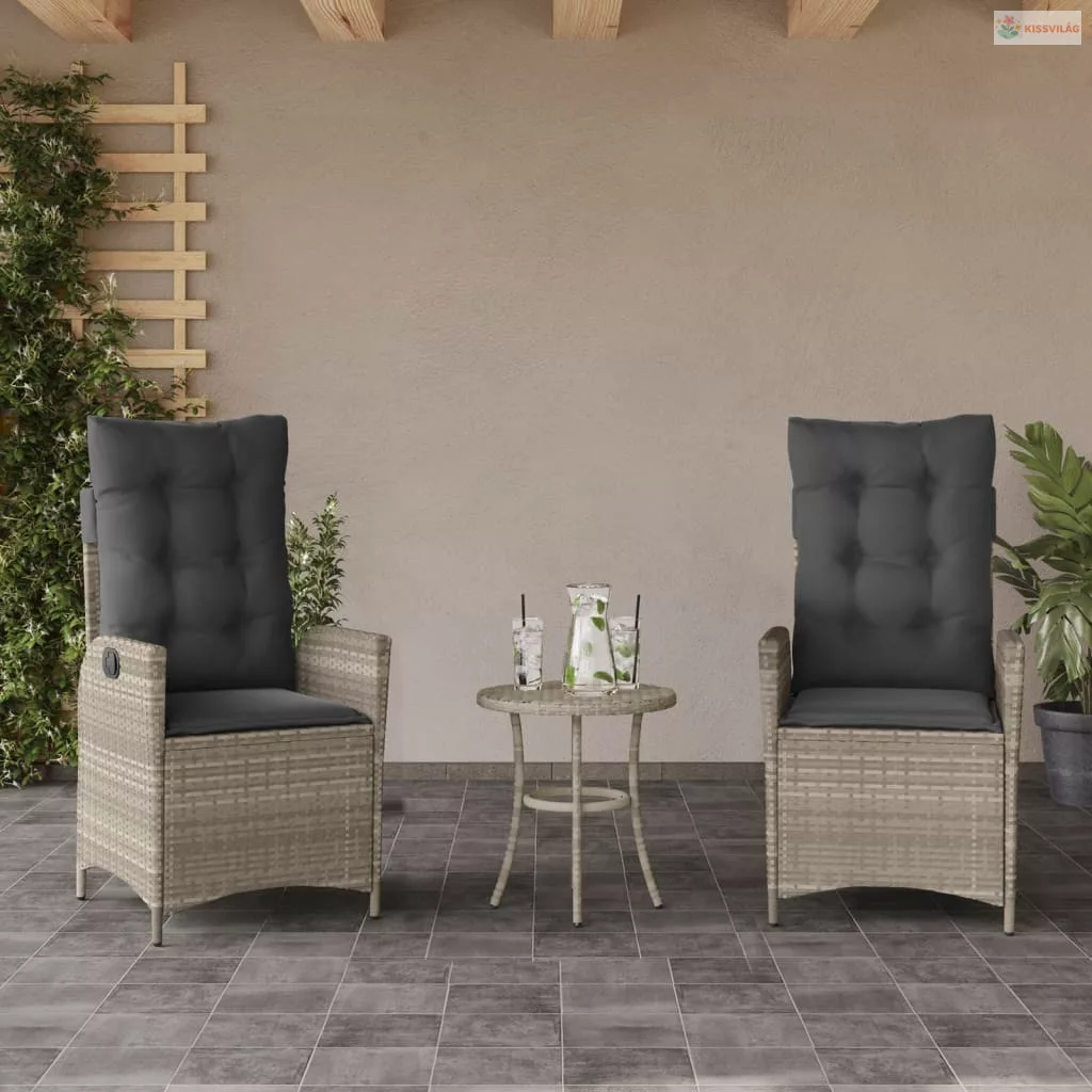 3 részes világosszürke polyrattan bisztrógarnitúra párnákkal