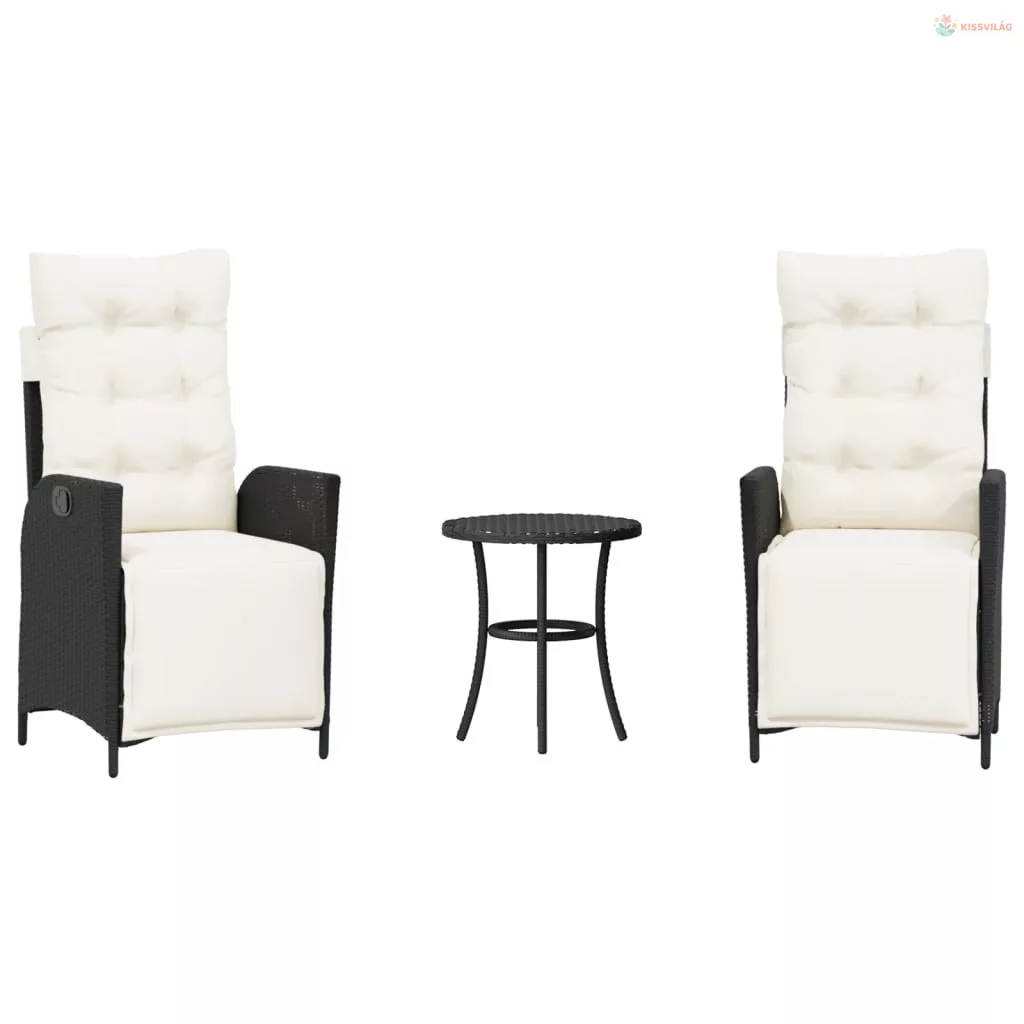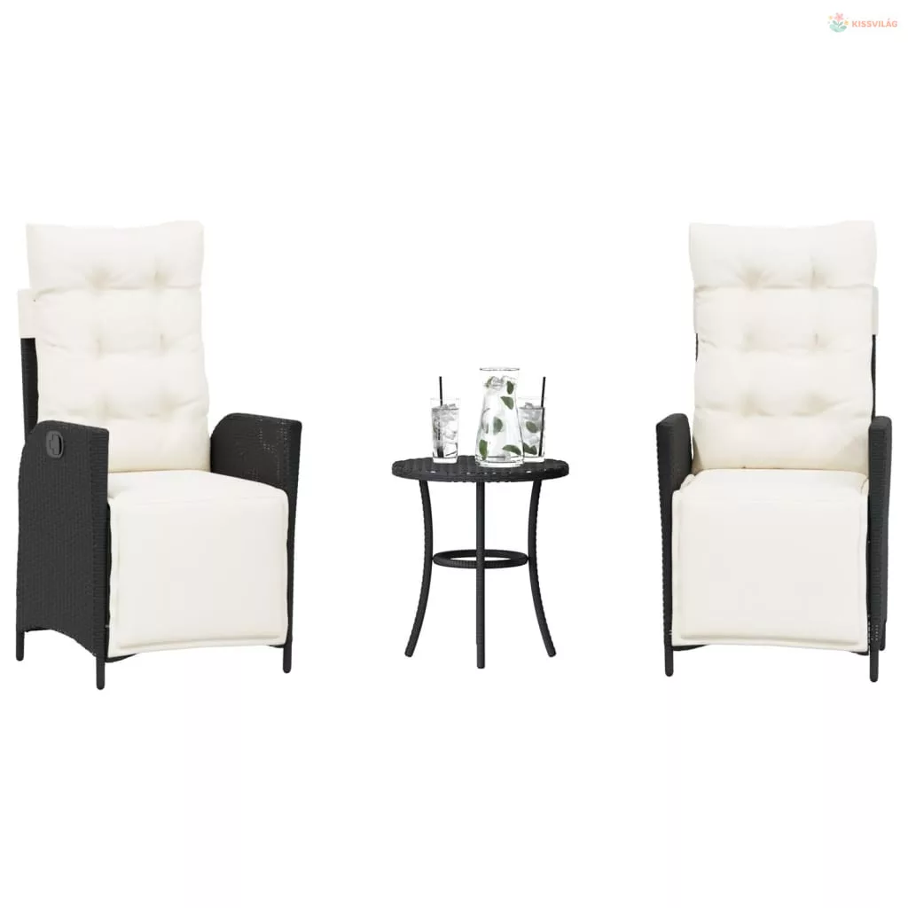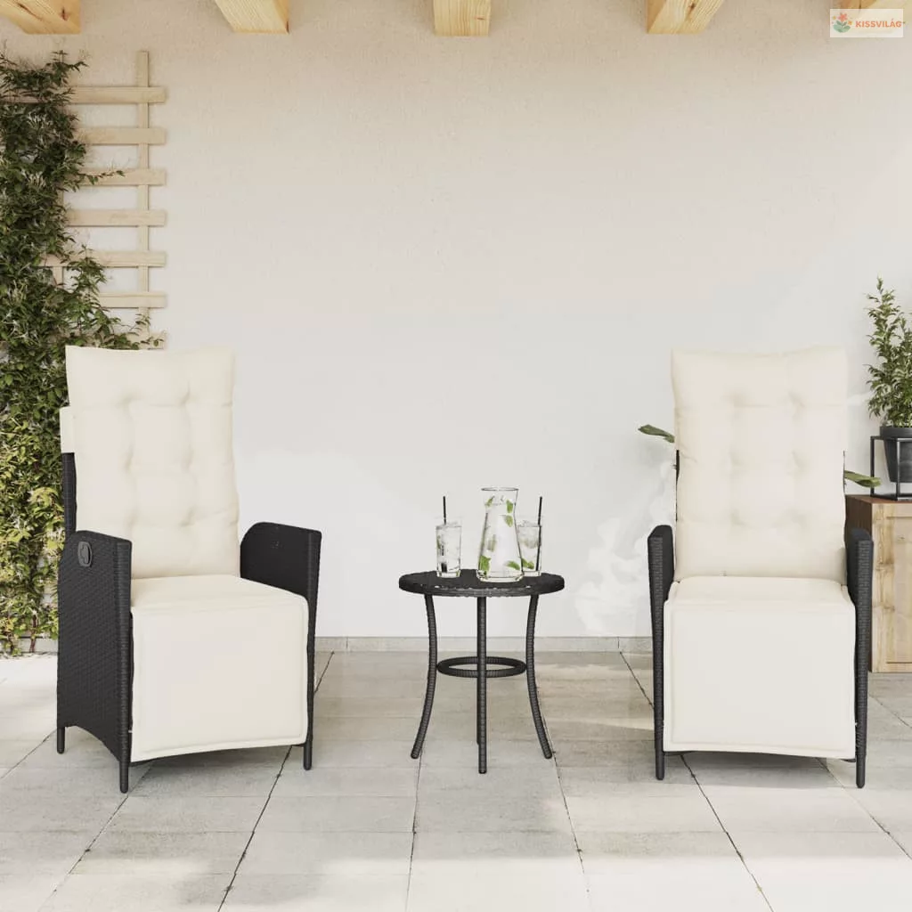 3 részes fekete polyrattan bisztrógarnitúra párnával