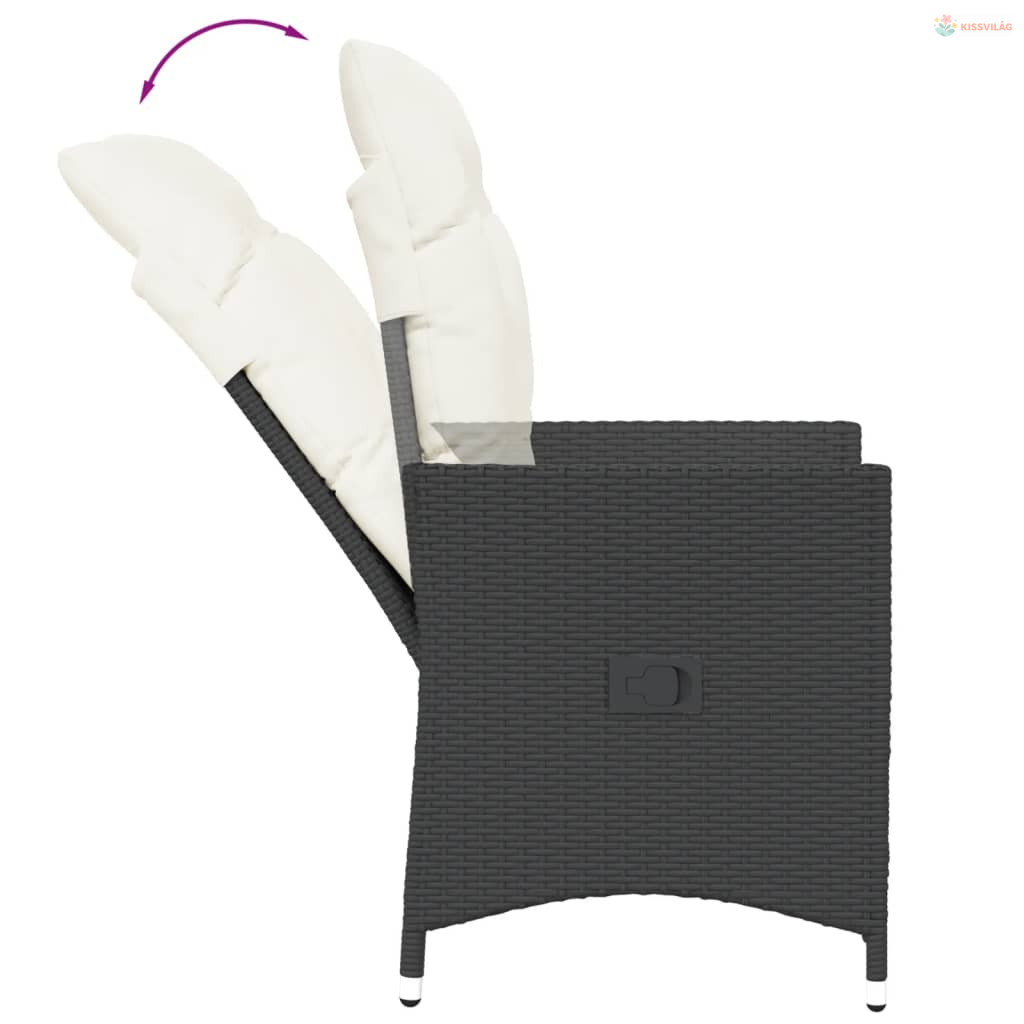 3 részes fekete polyrattan bisztrógarnitúra párnával